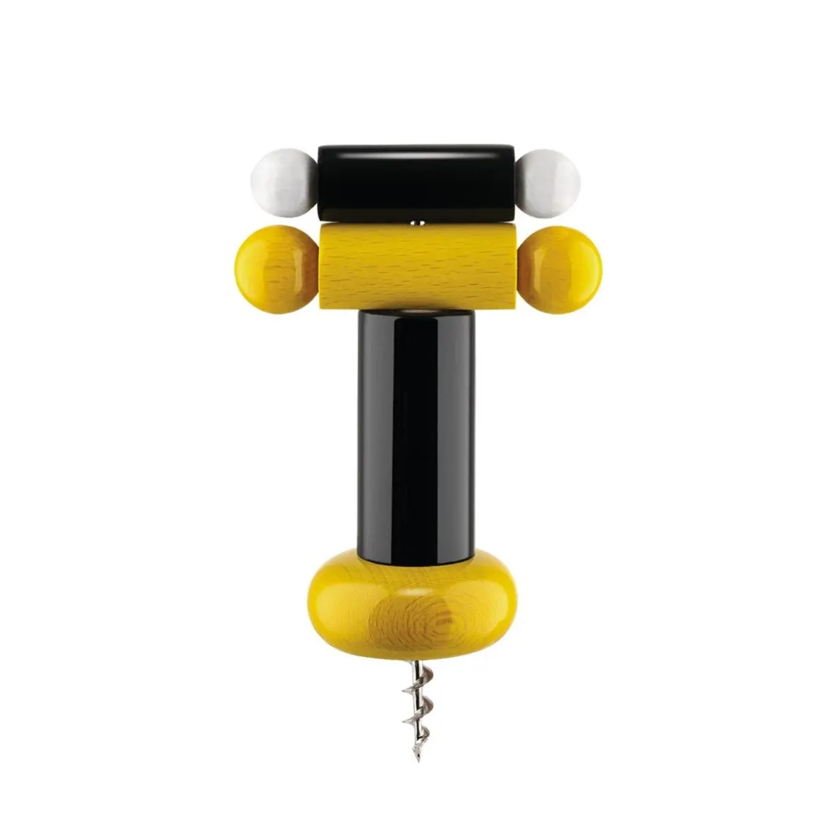 Tire Bouchon de Alessi par Ettore Sottsass. Le tire-bouchon selon Ettore Sottsass: un outil à la fois efficace et captivant. Facile à utiliser: les volumes dessinés par Sottsass composent une forme ergonomique qui offre une prise en main confortable. Il est fabriqué en Italie, où Alessi a son siège, grâce à un processus de tournage en partie manuel, à partir de bois, qui garantit son origine éco-responsible, peint à l’aide de peintures à base d’eau et totalement sans solvants, qui sont durables pour l’environnement et sans danger pour la santé humaine.