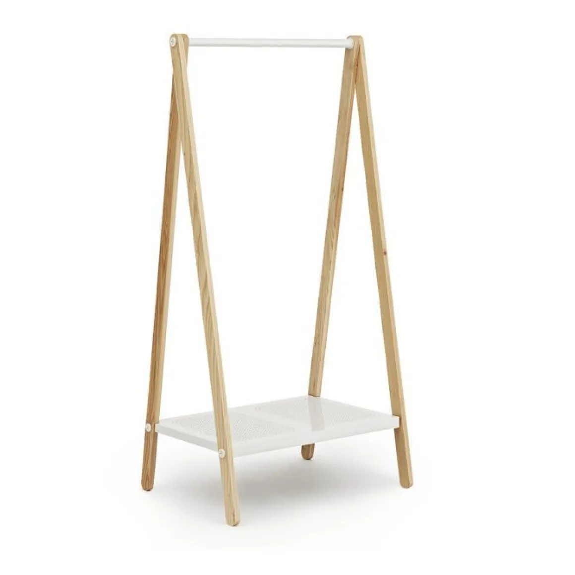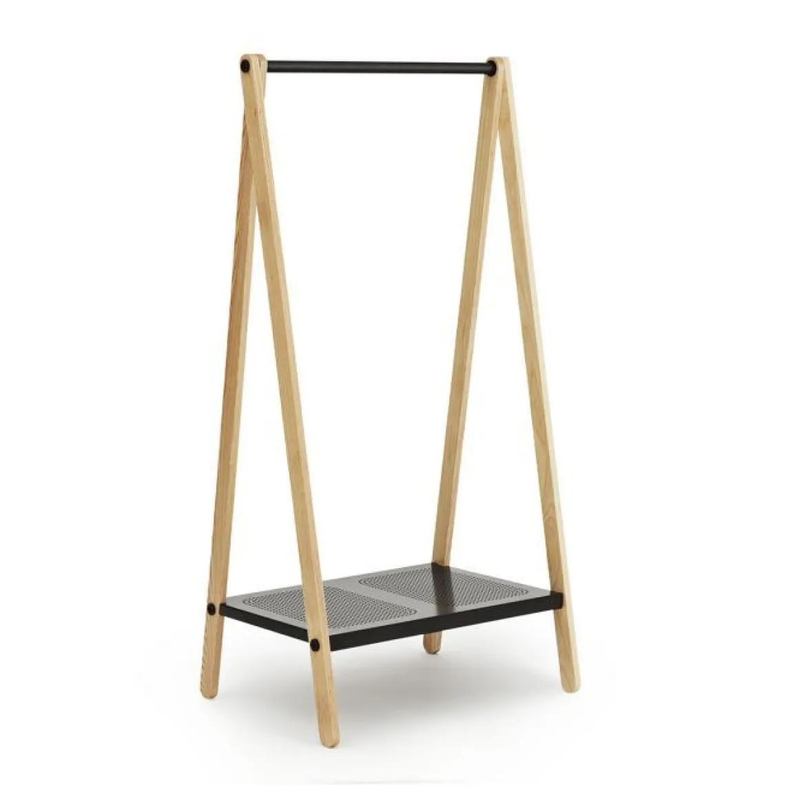 Réalisé en frêne, Toj reprend la forme du chevalet classique, sous lequel est venu s’insérer une étagère en métal, ultra pratique pour déposer vêtements et chaussures ! Avec ses lignes nettes et naturelles, son design est simple et graphique et son style chaleureux. Un portant qui peut se placer dans un dressing ou comme porte-manteau dans une entrée. Le portant Toj se décline en deux tailles différentes, en bois de frêne avec étagères blanches ou grises.