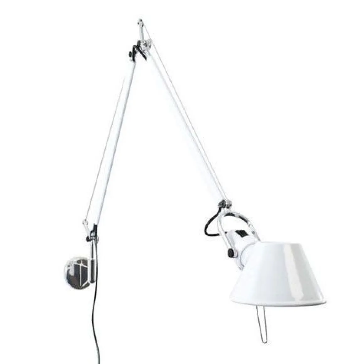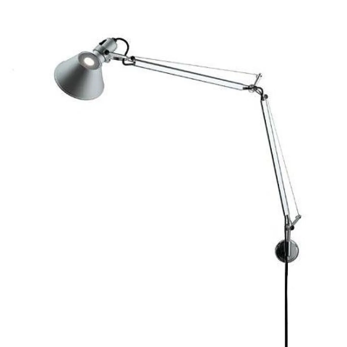 L’applique Tolomeo est dotée d’une structure faite de bras articulés en aluminium poli. Son diffuseur, orientable dans toutes les directions, est en aluminium anodisé. Ses rotules et ses supports sont en aluminium brillant. Elle est dotée d’un système d’équilibrage à ressorts et d’une émission lumineuse directe orientable, particulièrement indiquée pour une utilisation près de terminaux informatiques.