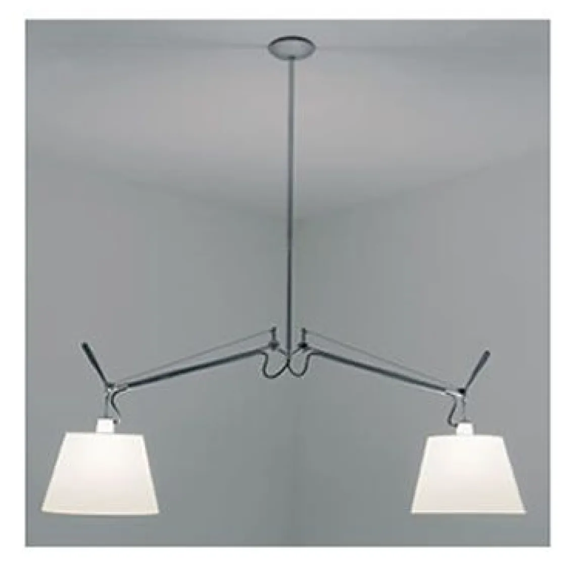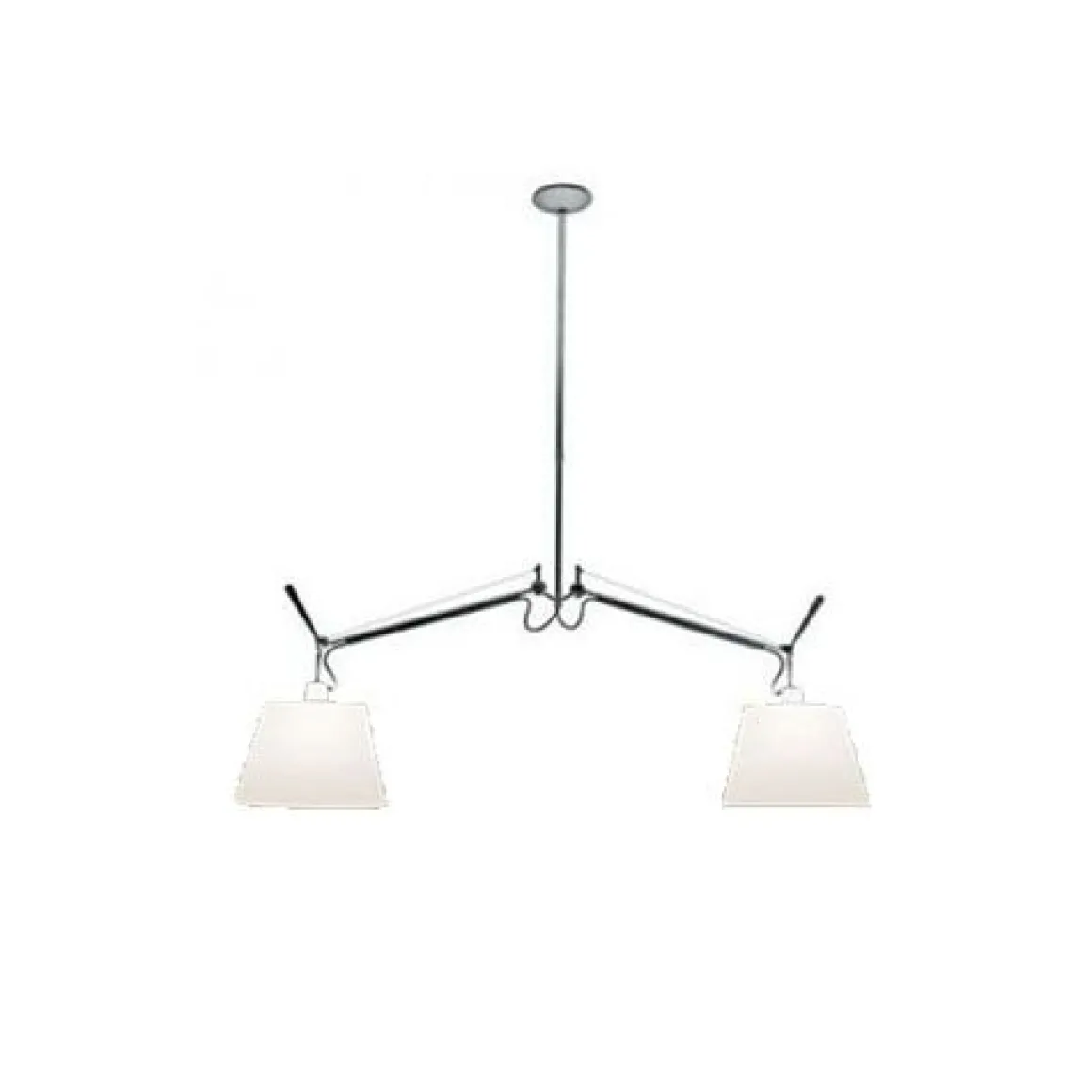 Tolomeo suspension 2 bras est une suspension composée de deux bras orientables en aluminium poli et deux diffuseurs orientables. Les diffuseurs sont en papier parchemin ou en polycarbonate recouvert de satin de soie. Le système d’équilibrage est géré grâce à des ressorts.
