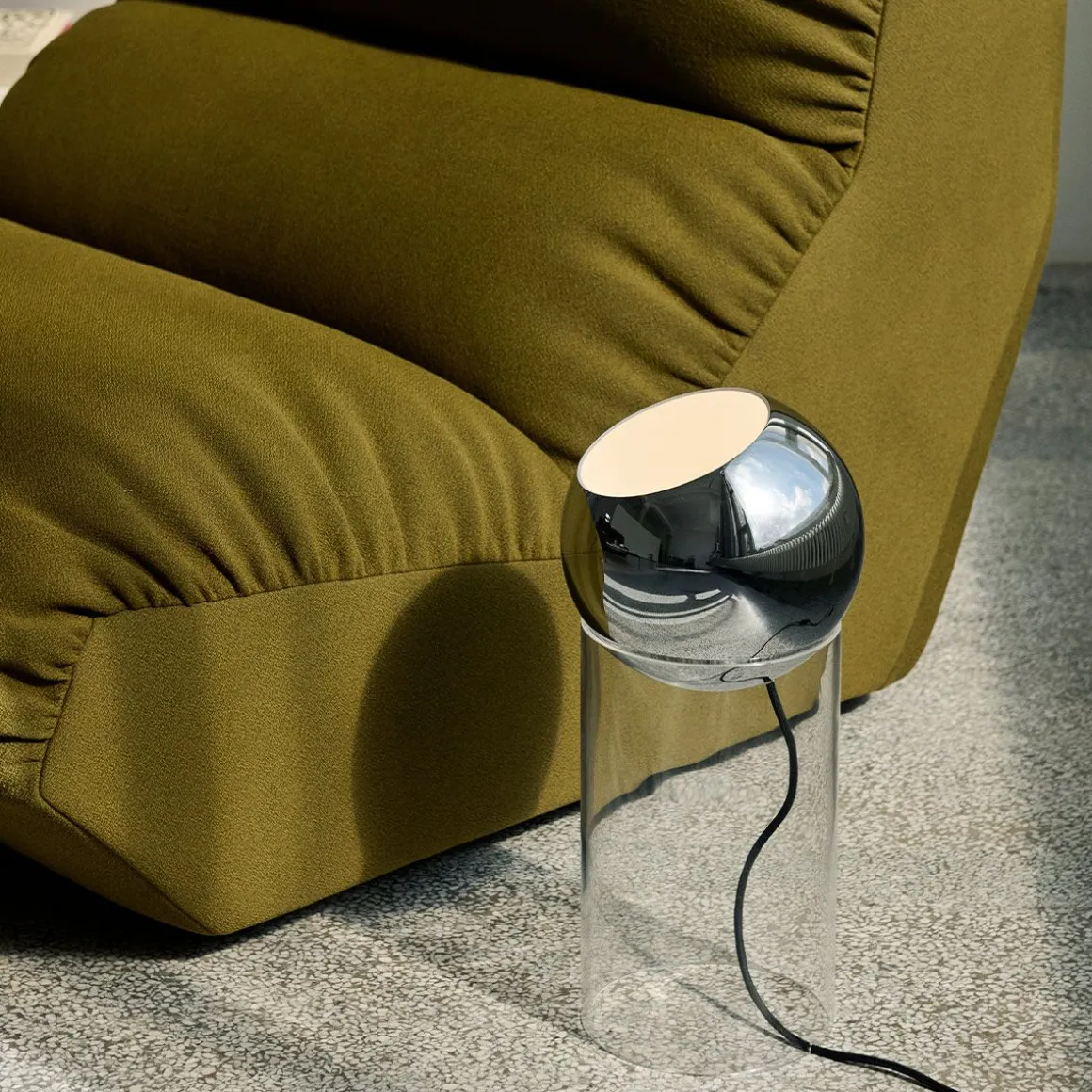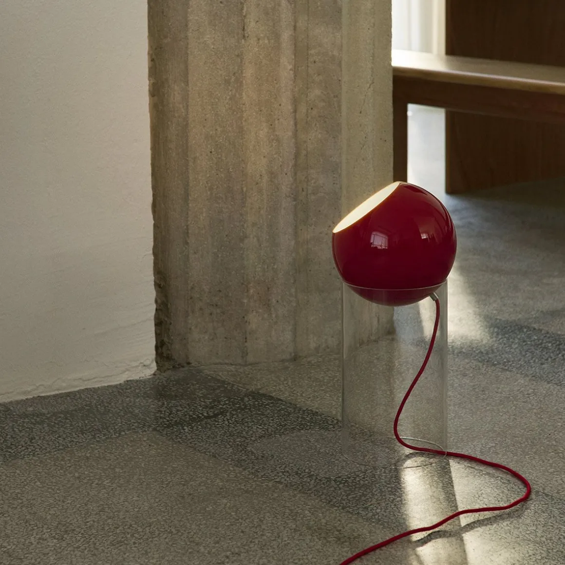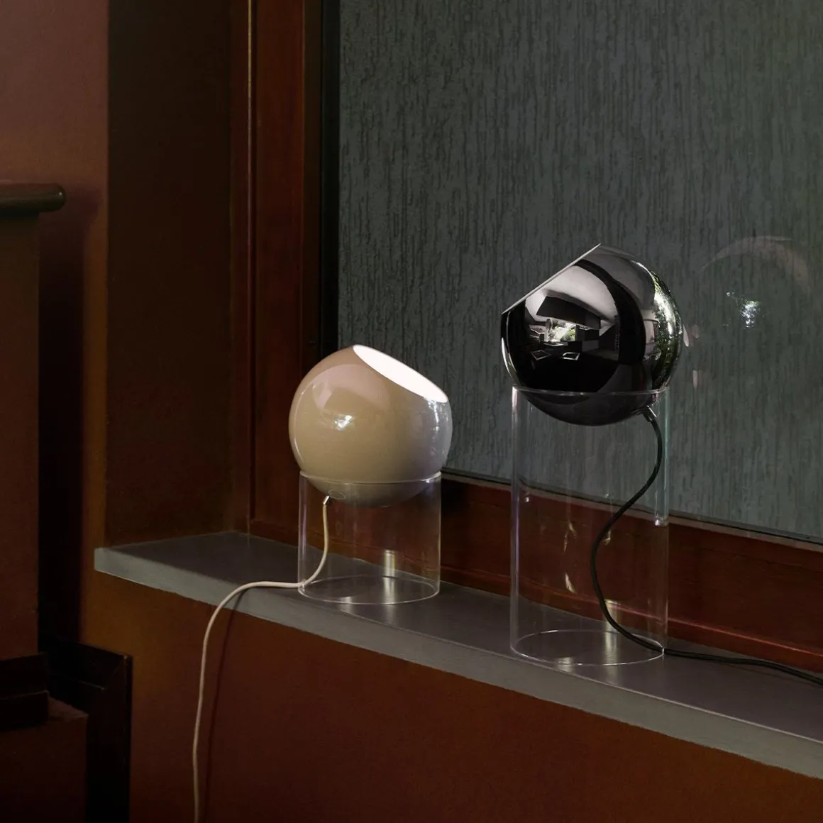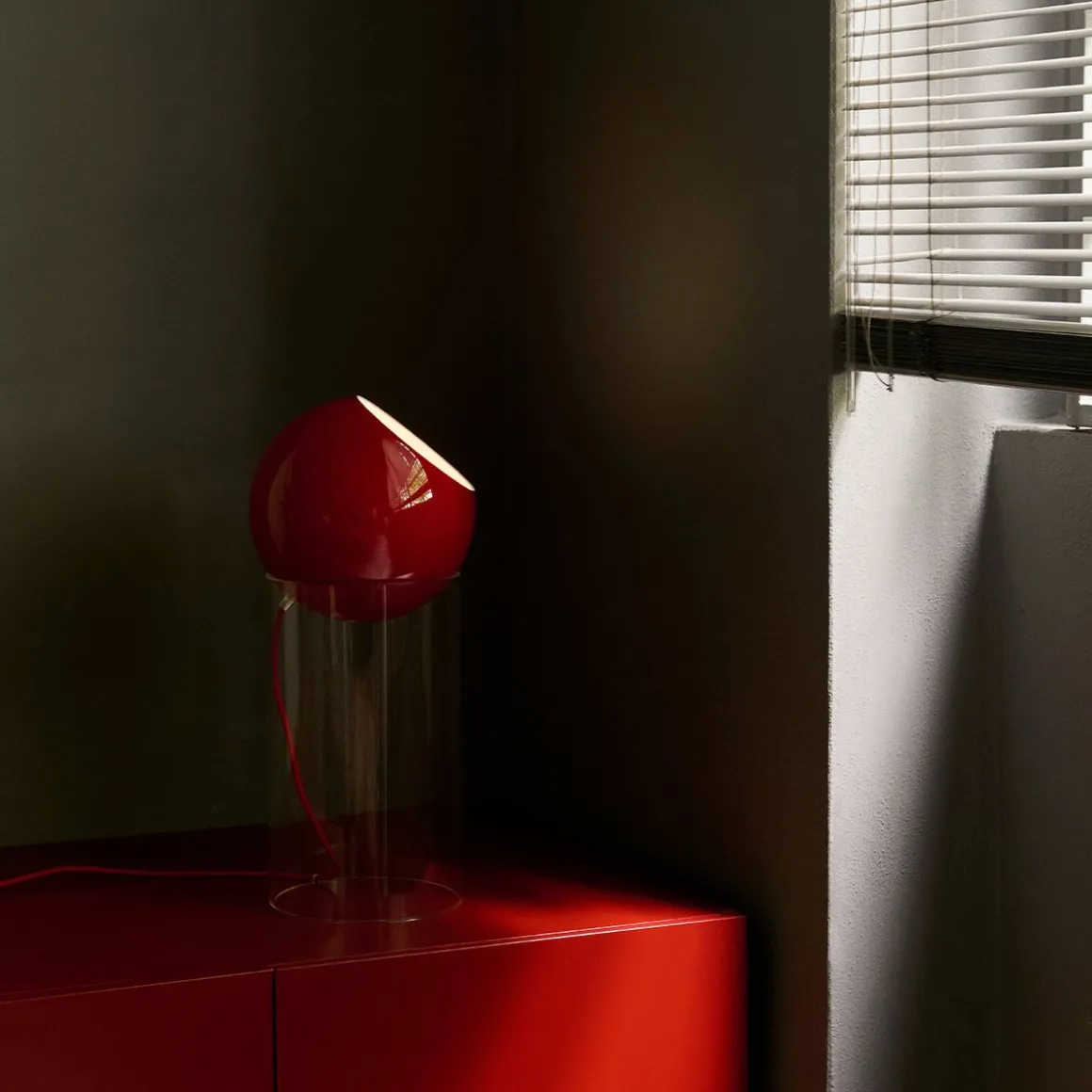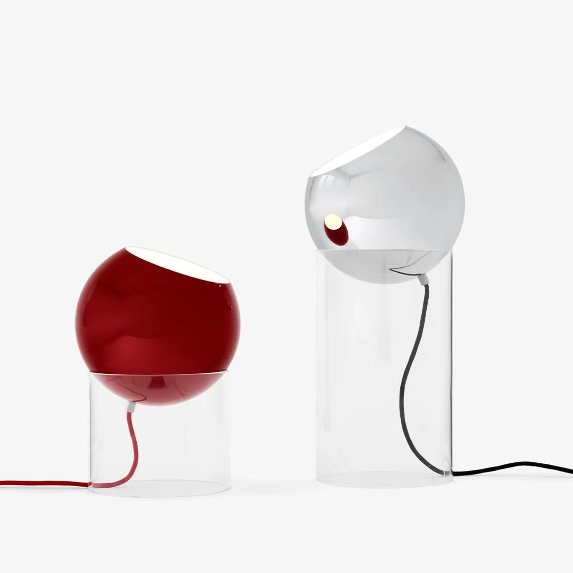 Matériaux : aluminium laqué ou plaqué, tube acrylique transparent et cordon textile