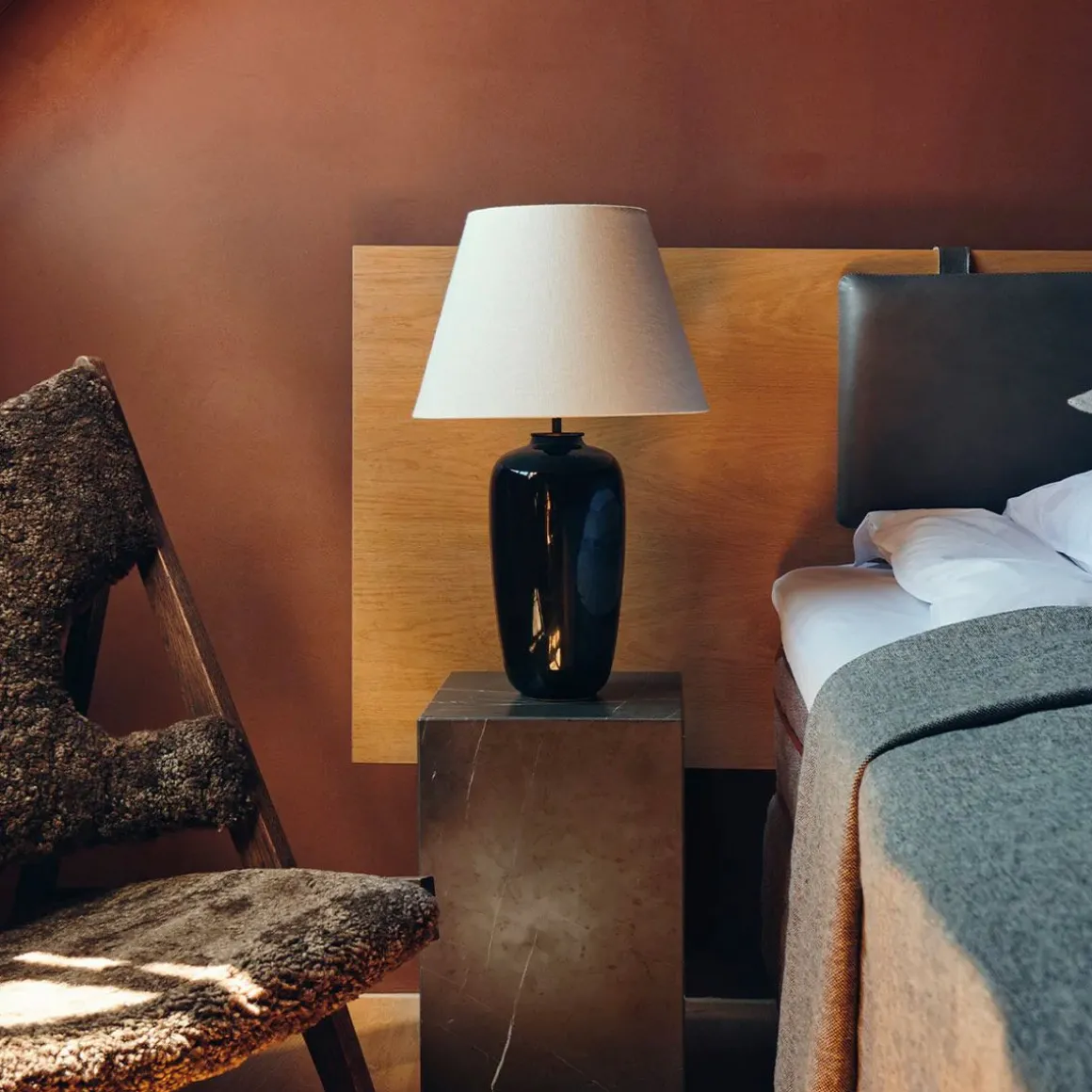 Les pouvoirs transformateurs de la lumière entrent en jeu sur la lampe de table Torso de Krøyer-Sætter-Lassen, conçue avec un look intemporel qui se prête à n’importe quel décor. La base allongée – moulée en grès émaillé noir et allongée pour une expression à la fois sobre et sculpturale – contient un abat-jour en lin tactile qui diffuse la lumière pour créer une ambiance instantanée. Un graduateur tactile en laiton permet un réglage personnel.