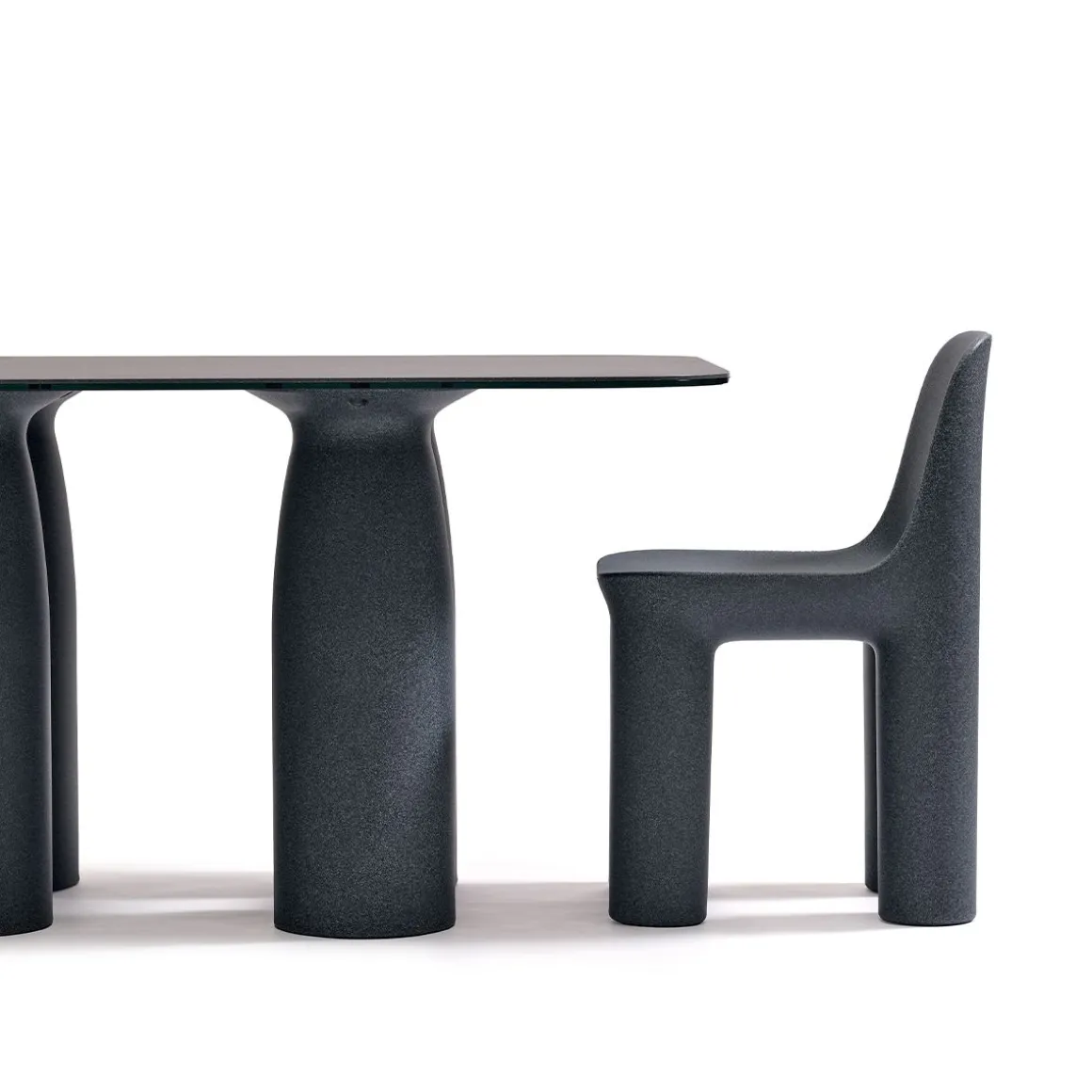 La collection Toto propose une sélection de tables prêtes à commander, disponibles en différentes variantes. Découvrez la table rectangulaire (200 x 120 cm) avec plateau en HPL ou plateau en grès cérame, soutenue par six pieds en polyéthylène recyclable.