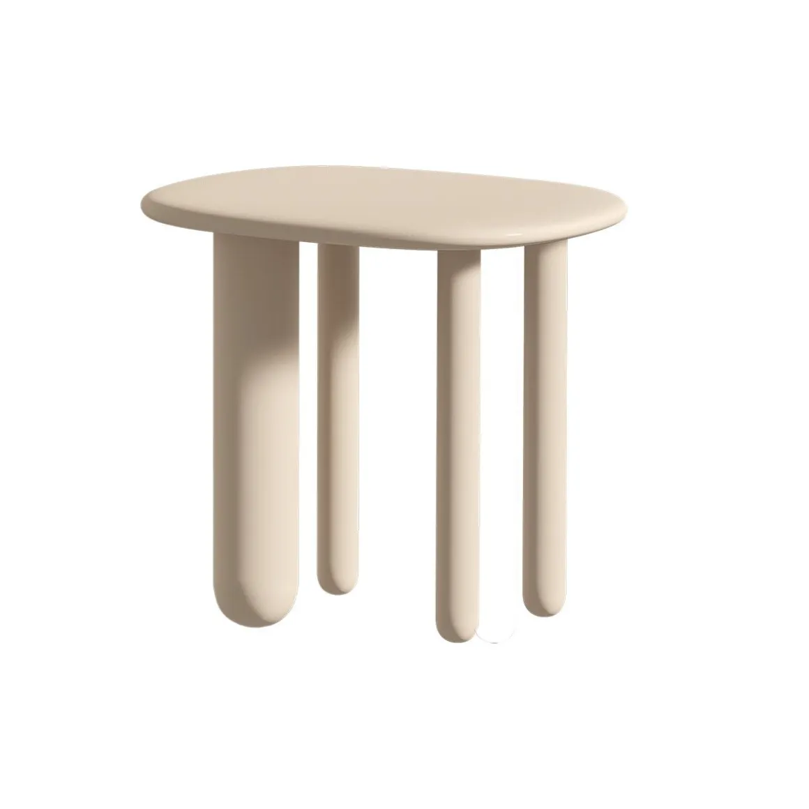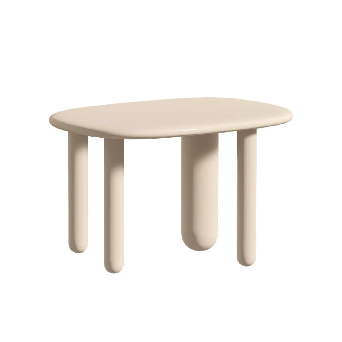 Pour compléter la collection, une série de tables basses réalisées en trois tailles différentes et caractérisées par un repose-pieds inhabituel à trois pieds. Pour les tables également, les éléments distinctifs sont représentés par la forme douce et arrondie du plateau, en MDF avec un bord façonné, et par le diamètre généreux des pieds en bois massif tourné. La finition est une laque brillante en trois variantes de couleurs dans des tons pastel. Usage interne uniquement.