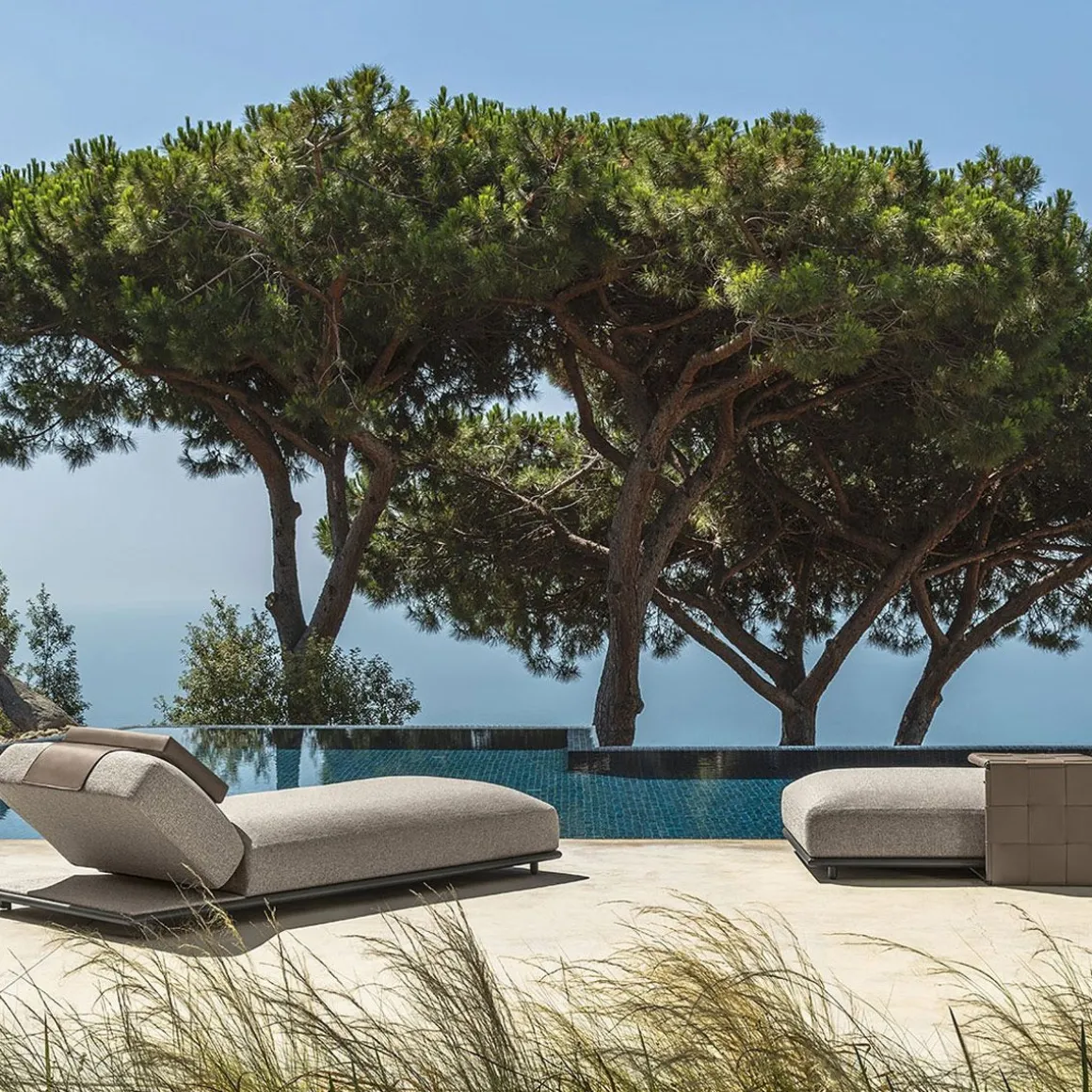 Tressé de Talenti par Carlo Colombo. Le lit Tressé, élégant et sophistiqué, est la solution idéale pour rendre confortable son salon extérieur. Ce meuble, dont les formes ont été conçues pour offrir une détente inégalée, se caractérise par un impressionnant coussin recouvert d’un tissu résistant. D’un côté inclinable, il vous permet de trouver l’assise parfaite pour profiter des espaces extérieurs ou au bord de la piscine.