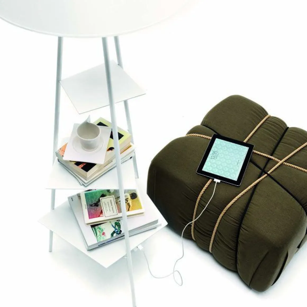 Tri.Be.Ca est une lampe de sol conçue par Marzia et Leonardo Dainelli pour Mogg. Des étagères confortables et une prise USB pour charger des tablettes et des smartphones … le tout dans une seule lampe. De Mogg, une autre réalisation brillante, au nom de l’innovation et de l’originalité. Tri.Be.Ca est une lampe avec des étagères confortables sur laquelle ranger tous types d’objets: livres, lunettes, téléphone portable ou tablette. De plus, grâce à la prise USB pratique, vous pouvez charger n’importe quel appareil de manière pratique.