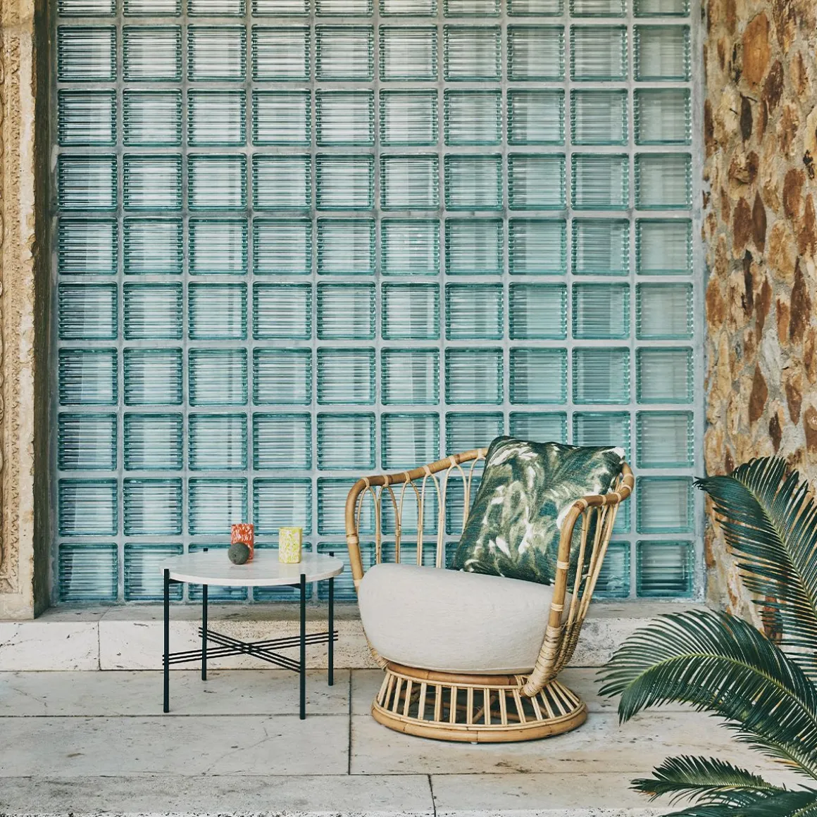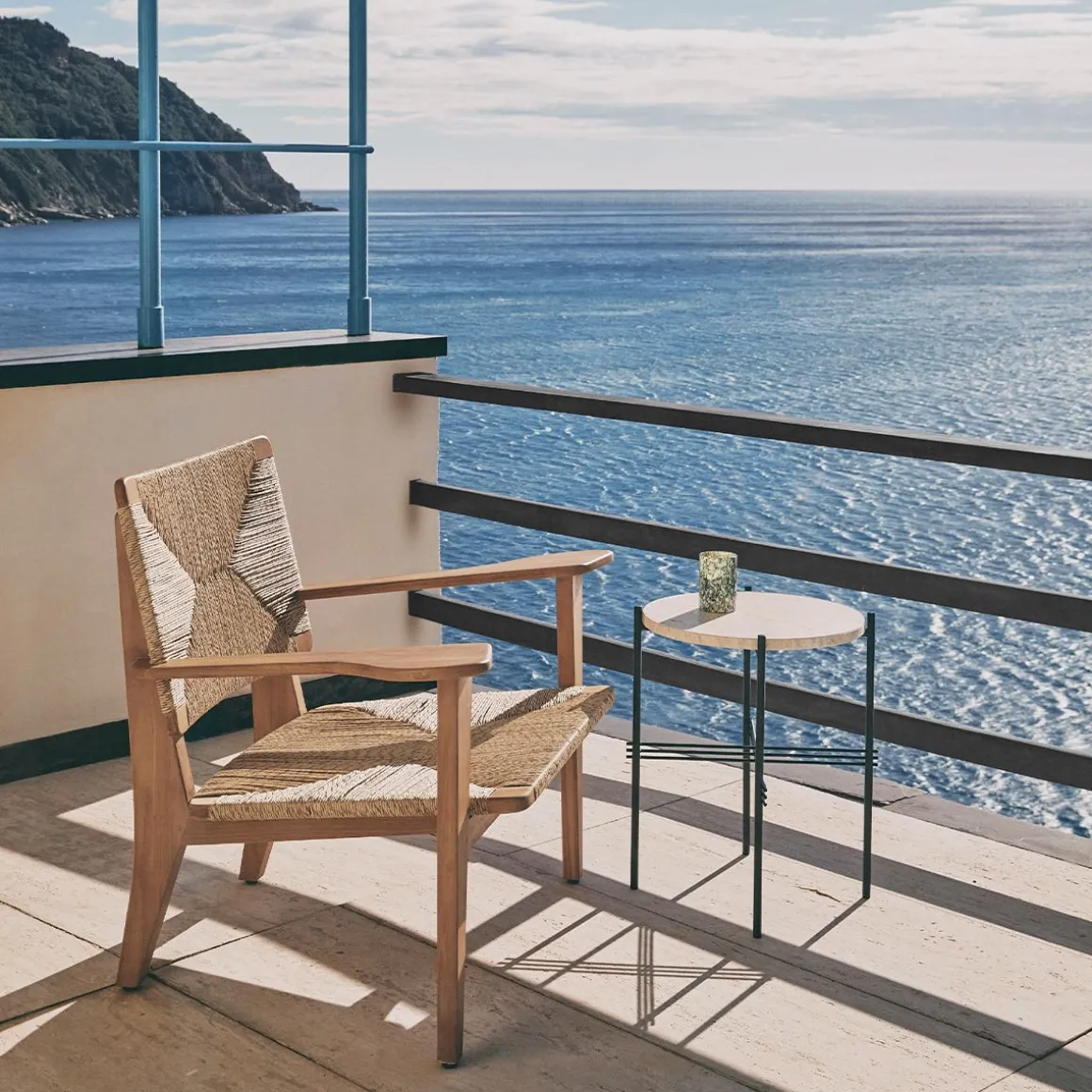 Ts Outdoor Side Table de Gubi. La collection TS est déjà bien connue et appréciée des amateurs de design pour sa capacité à s’adapter à tous les intérieurs et toutes les ambiances. Maintenant, les tables d’appoint et basses TS à base noire reçoivent le traitement extérieur. Les plateaux de table luxueux, en travertin blanc magnifiquement veiné, complètent les bases géométriques pointues en acier inoxydable enduit de poudre et permettent à l’esthétique intérieure élégante de la collection de franchir le seuil à l’air libre.