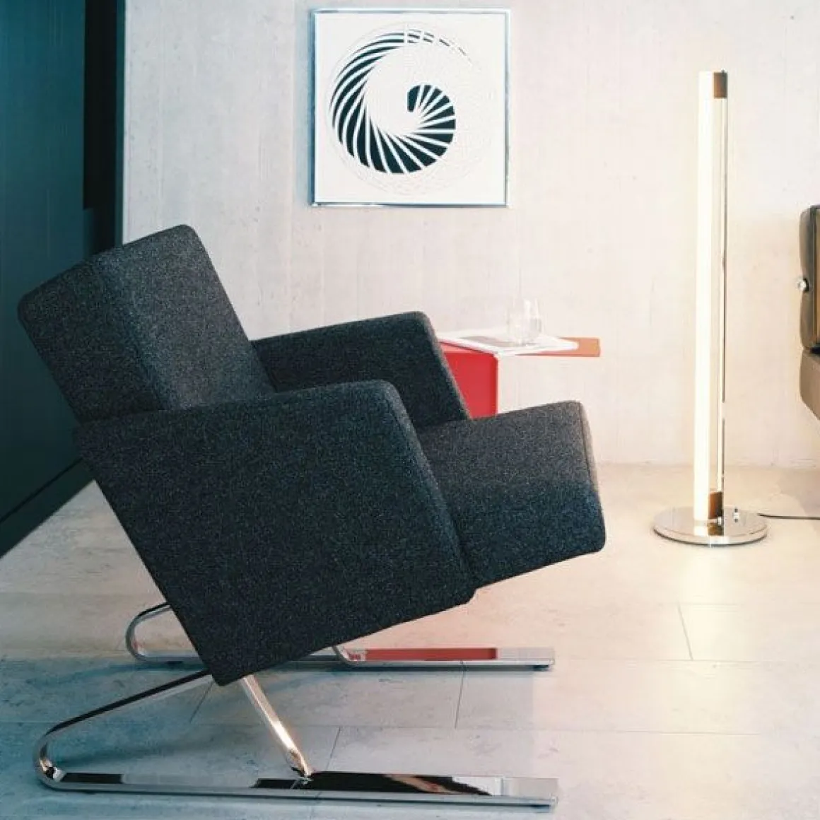 Tube Light est une réédition du lampadaire conçu par Eileen Gray en 1927. La structure de Tube Light en acier chromé répond avec une symétrie parfaite au tube Linestra à fil incandescent. L’éclairage produit, franc et chaleureux, est diffusé uniformément sur toute la longueur du tube. Le lampadaire Tube Light est une création incontournable du design du 20 ème siècle.
