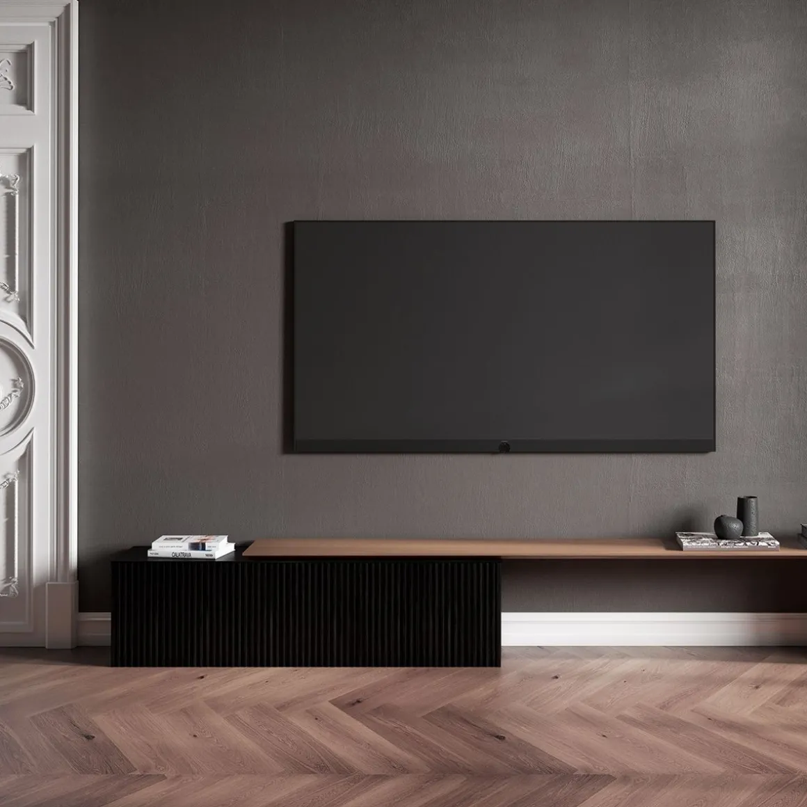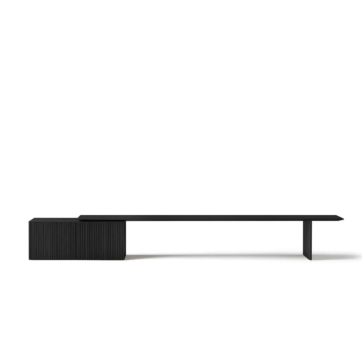 Le bois est le protagoniste dans son essence et dans le détail des portes caractérisées par un motif vertical qui dénote la tridimensionnalité d’un objet essentiel.
