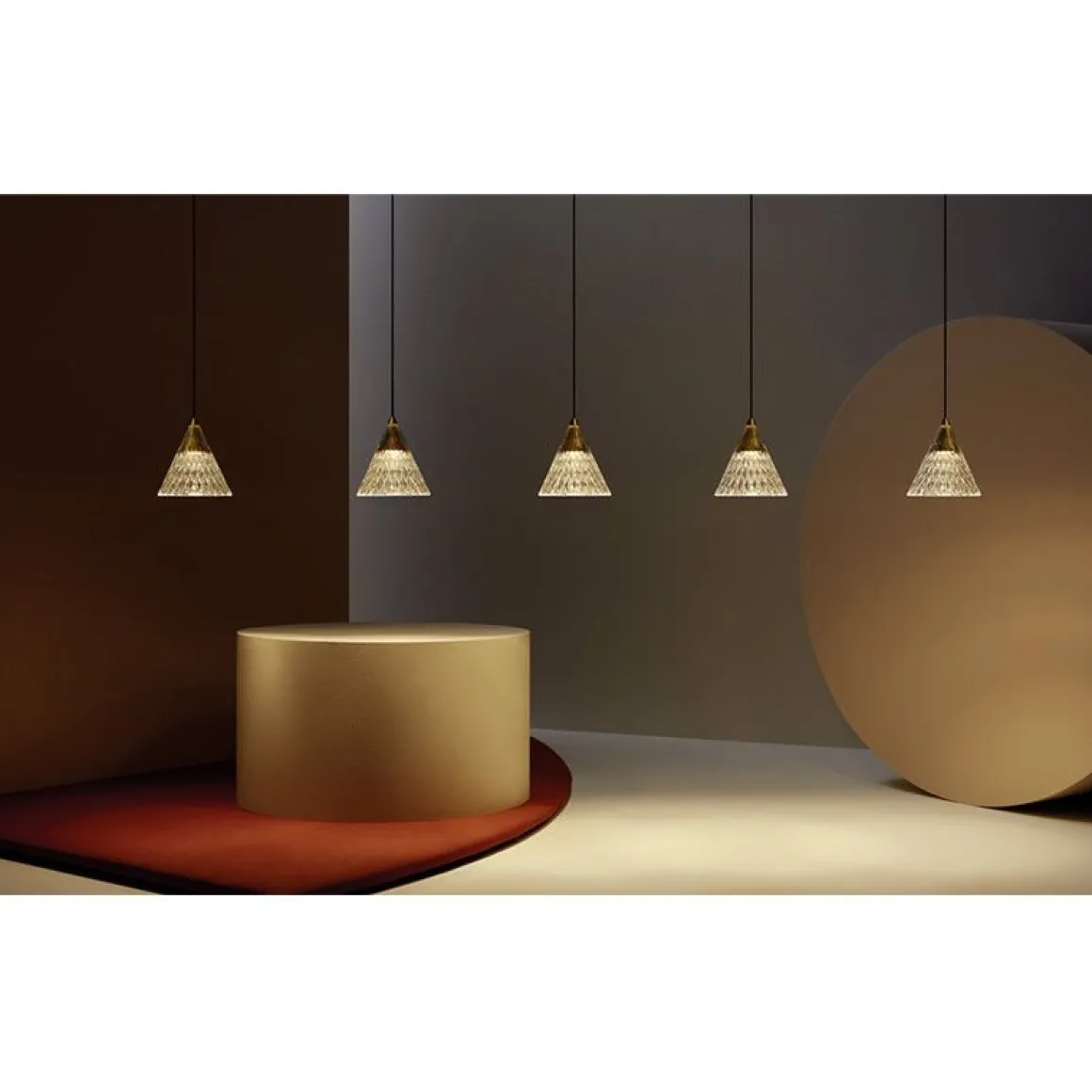 Veneto est un luminaire aux formes simples et aux finitions soigneusement sélectionnées. Son relief structurel en méthacrylate et le détail doré de la pièce se combinent pour conférer au luminaire un caractère propre qui correspond à sa mise en scène. Veneto propose un éclairage diffus et délicat, chaleureux et intime, dans ses versions simples et multiples.