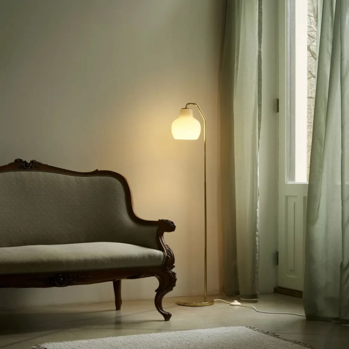 Le lampadaire VL Ring Crown fournit une lumière dirigée vers le bas grâce à son ouverture en bas de l’abat-jour en verre brillant soufflé à la bouche. Le verre blanc opalin à trois couches fournit un éclairage doux, diffus et uniforme entourant la lampe, garantissant un éclairage agréable et non-éblouissant et une ambiance accueillante. Lancées en 2025, les lampes de table et lampadaires VL Ring Crown rendent hommage à la série originale du même nom, dont l’histoire remonte à plus de 80 ans. Les lampes VL Ring Crown font partie d’une série comprenant une suspension, des lustres et des lampes murales, créées par l’architecte danois Vilhelm Lauritzen pour Radiohuset (maison de la radio), siège de la Danish Broadcasting Corporation, inaugurée juste après la fin de la Seconde Guerre mondiale en 1945. Fidèles au design et aux matériaux originaux, les lampes de table et lampadaires VL Ring Crown sont composées de laiton poli et d’abat-jours en verre blanc opalin soufflé à trois couches brillantes, complétant magnifiquement les designs des lampes d’origine installées à Radiohuset. Vilhelm Lauritzen a également conçu les lampes VL 38, VL Studio et VL 45 pour Radiohuset.