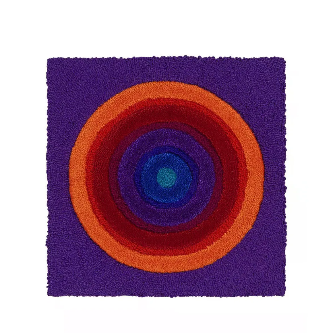 VP Domino Circle de Amini par Verner Panton. À partir d’un projet développé en 1974, la collection présente dix modules carrés de taille identique (60×60 cm) définis par autant de motifs géométriques, dans les huit couleurs de la série de couleurs de Panton. Cercles, carrés, vagues, rayures, quarts de cercle et quarts de carré, réalisés en laine précieuse et touffetés à la main, se prêtent à être librement composés pour donner vie aux motifs les plus variés. Les modules sont parfaitement adaptés pour décorer non seulement les sols, mais aussi les murs, et ils peuvent en outre être utilisés pour optimiser les qualités acoustiques d’un espace.