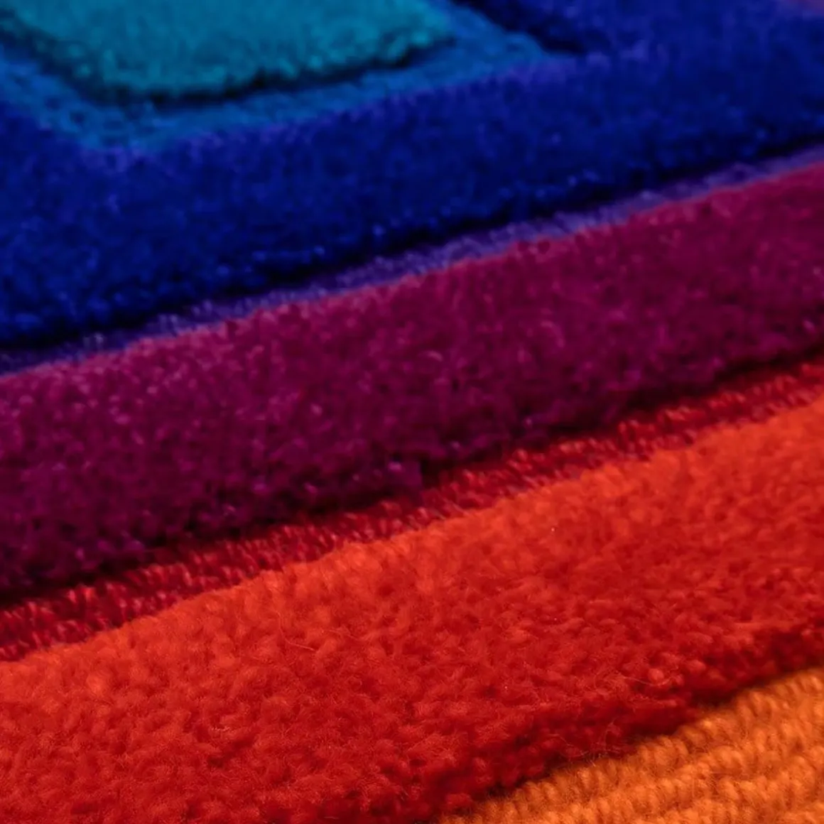 VP Domino Square de Amini par Verner Panton. À partir d’un projet développé en 1974, la collection présente dix modules carrés de taille identique (60×60 cm) définis par autant de motifs géométriques, dans les huit couleurs de la série de couleurs de Panton. Cercles, carrés, vagues, rayures, quarts de cercle et quarts de carré, réalisés en laine précieuse et touffetés à la main, se prêtent à être librement composés pour donner vie aux motifs les plus variés. Les modules sont parfaitement adaptés pour décorer non seulement les sols, mais aussi les murs, et ils peuvent en outre être utilisés pour optimiser les qualités acoustiques d’un espace.