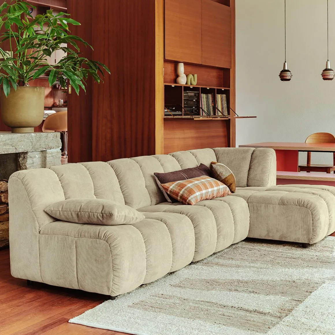 Finitions : beige (Corduroy Rib, Hay), crème (Bouclé, Cream)