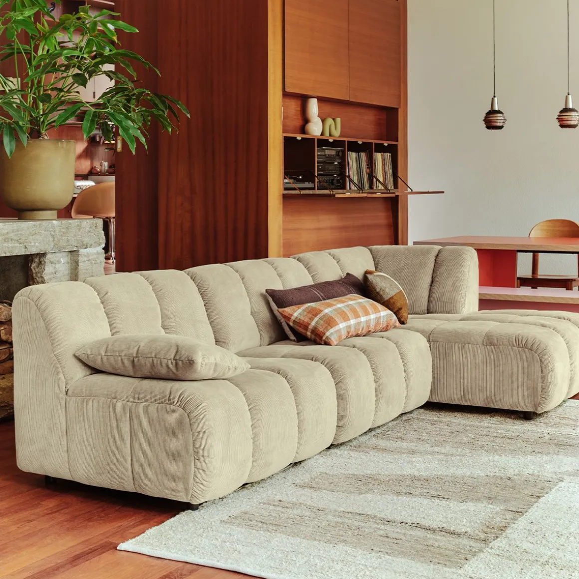 Finitions : beige (Corduroy Rib, Hay), crème (Bouclé, Cream)