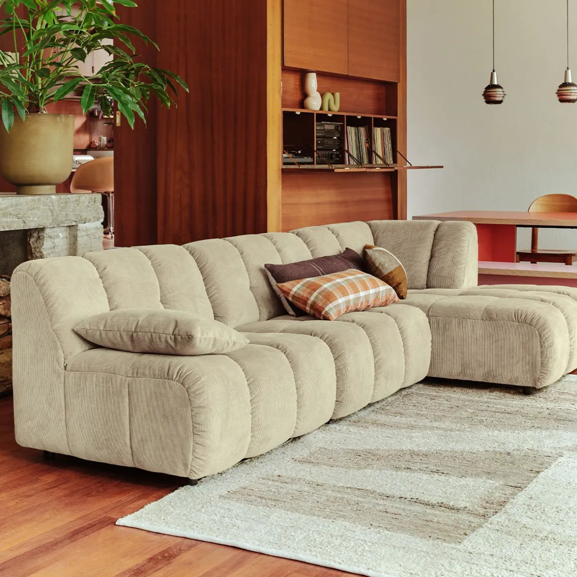 Finitions : beige (Corduroy Rib, Hay), crème (Bouclé, Cream)