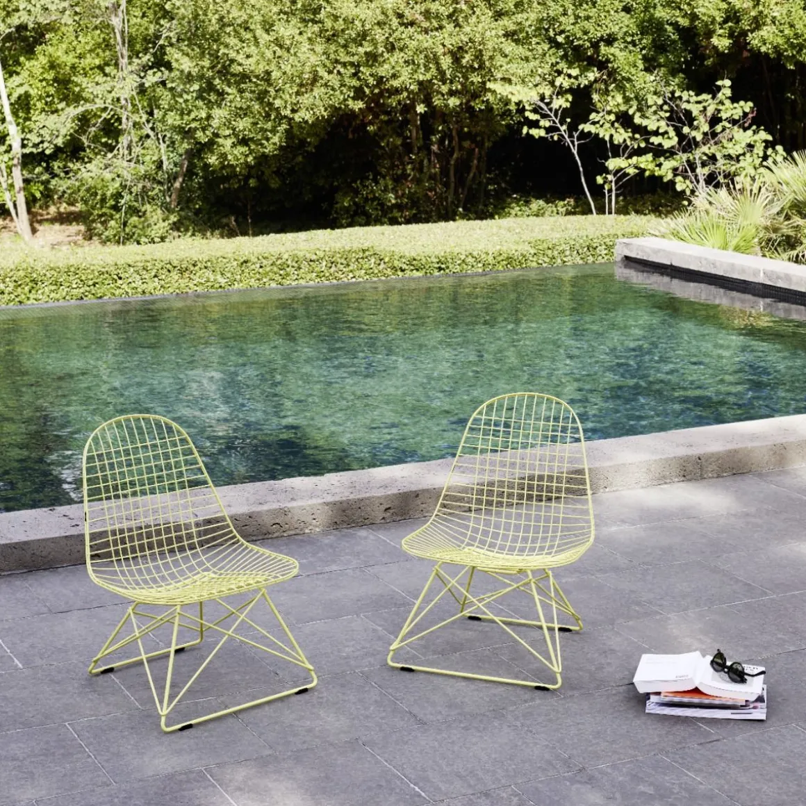 Charles et Ray Eames ont utilisé plusieurs variantes de la petite chaise LKR – dont la version LSR avec une coque en plastique – dans la Eames House, leur légendaire maison de Pacific Palisades. Comme toutes les autres Wire Chairs, la LKR est disponible sans rembourrage, avec un coussin d’assise ou avec un coussin d’assise et de dossier en deux parties, connu sous le nom de coussin « Bikini » en raison de sa forme. Le modèle sans rembourrage est adapté à un usage extérieur.