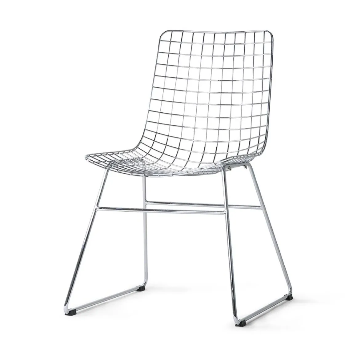 Chaise en fil métallique de la collection Wire disponible en blanc, noir ou silver.