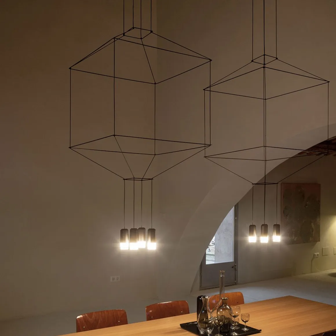 Wireflow, conçu par Arik Levy est un luminaire suspendu qui réinterprète de manière contemporaine l’esthétique des lampes araignées par un exercice de simplification explorant son essence et rehaussant son contour avec une grande délicatesse mais une forte présence formelle. Son apparence, s’agissant d’une structure de câbles fins terminés par des LEDs, se rapproche discrètement des lampes araignée classiques, conférant à ce type de luminaires une nouvelle dimension innovante et futuriste.