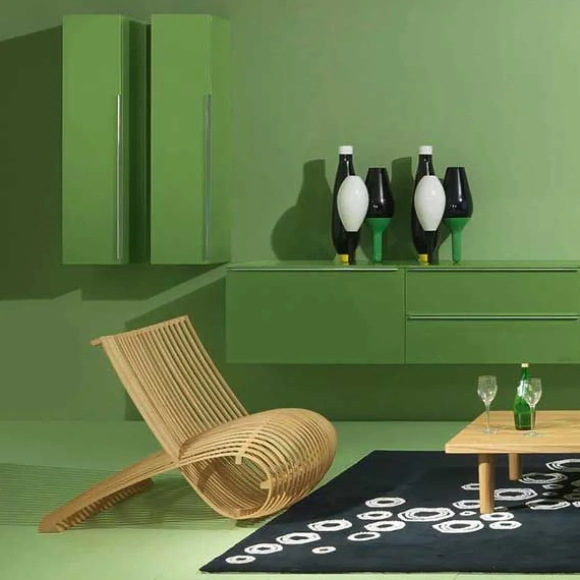 Wooden Chair est un siège moderne et innovant, mais il est aussi chaud, cosy et confortable. La structure, en frêne massif naturel huilé, est fluide et continue, presque organique. Les planches de hêtre, courbées à la vapeur chaude pour former une double courbe, sont soutenues par deux renforts horizontaux : 2 aux extrémités et 3 dans la zone du siège, tous fixés avec des vis apparentes.