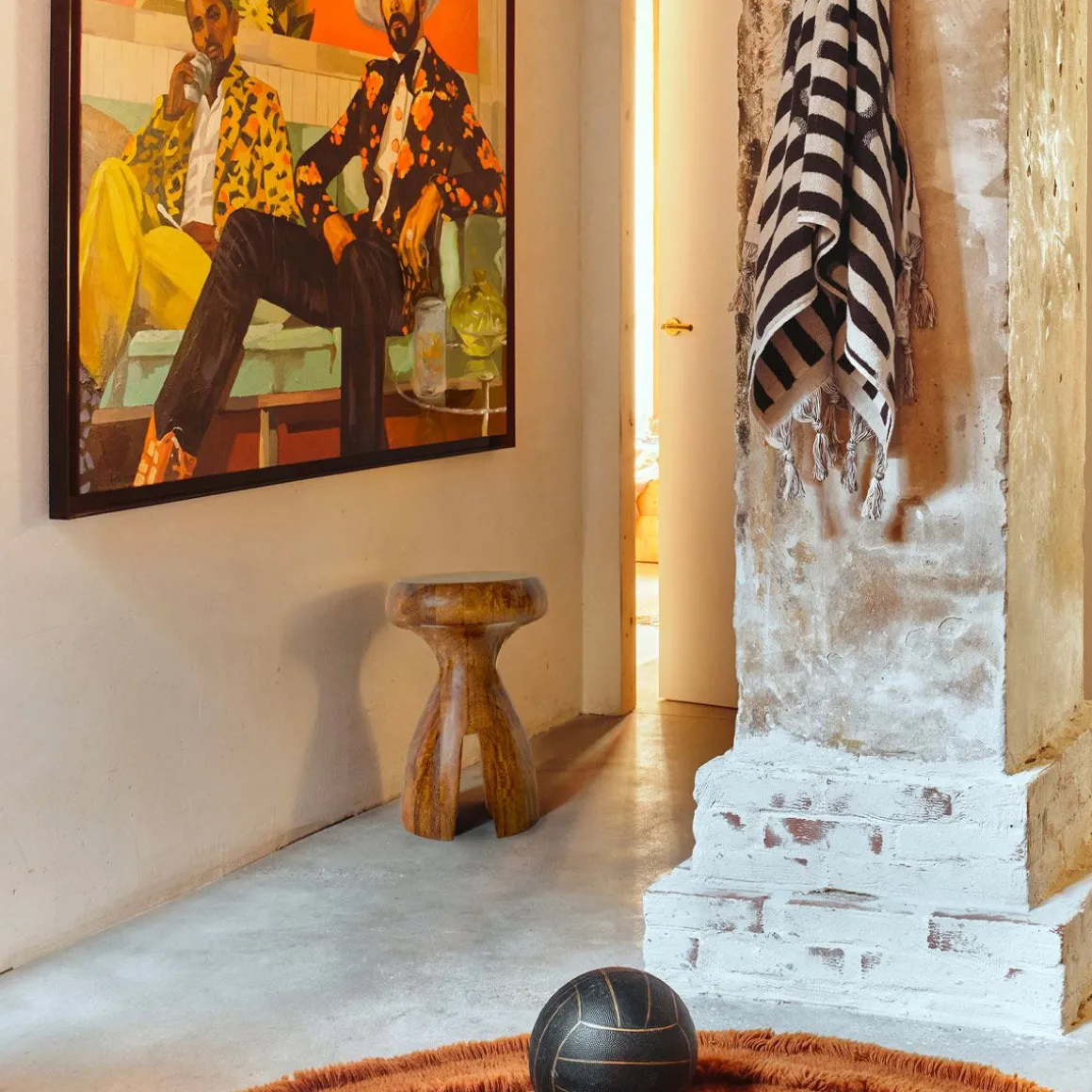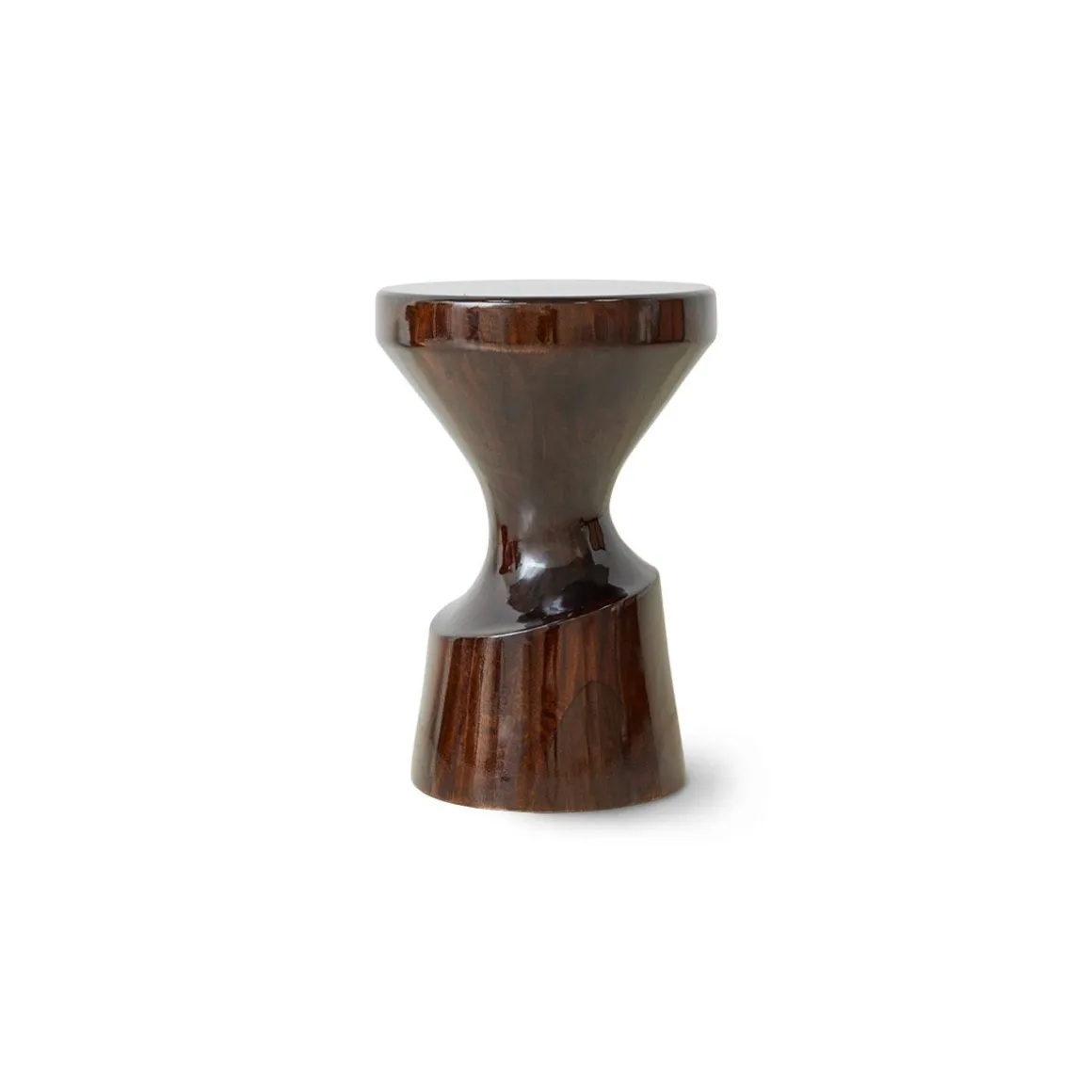 Wooden Stool de HK Living. Fabriqué à partir de bois massif et fini dans une teinture soyeuse brun foncé. Le tabouret est un meuble polyvalent qui peut être utilisé comme repose-pieds, table d’appoint ou objet de décoration. Sa couleur chaude donne une ambiance tropicale et un aspect incomparable.