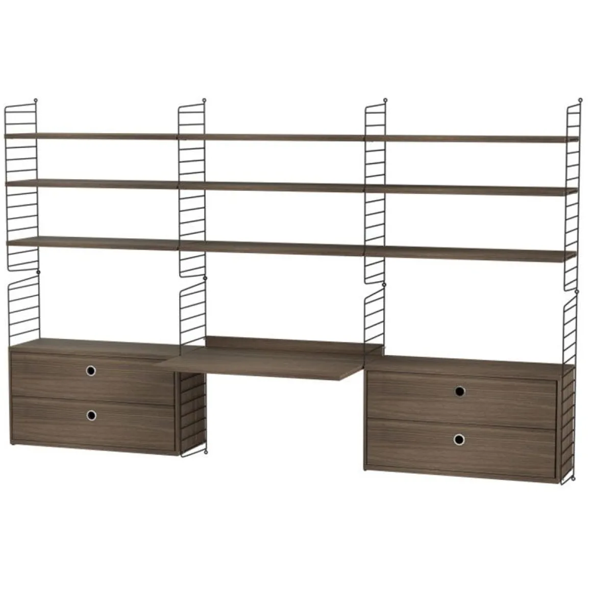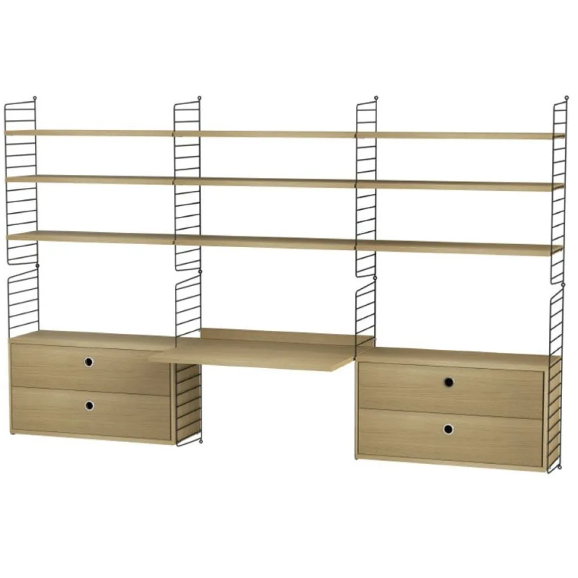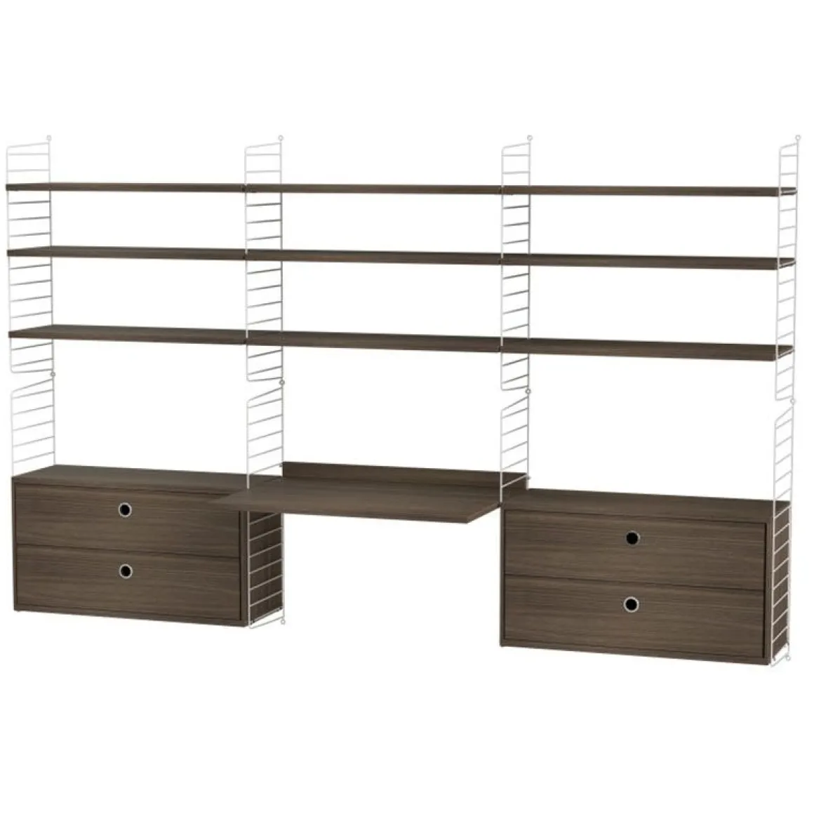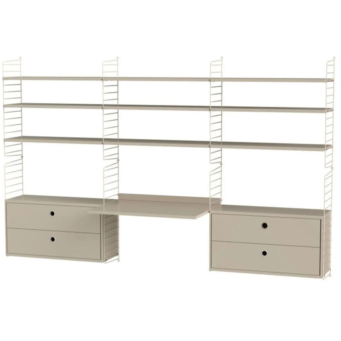 Que votre espace de travail soit situé au bureau ou à la maison, nous avons la solution qui couvre tous vos besoins. Pour l’espace de travail plus spacieux, nous avons cette combinaison murale avec de nombreuses étagères, des armoires et un bureau au milieu.
