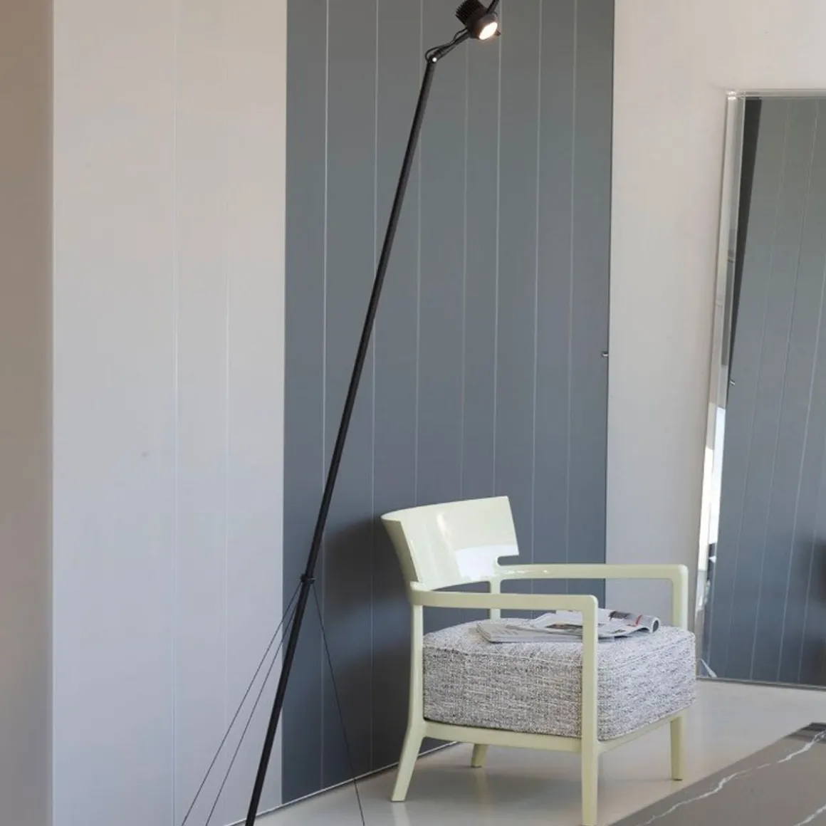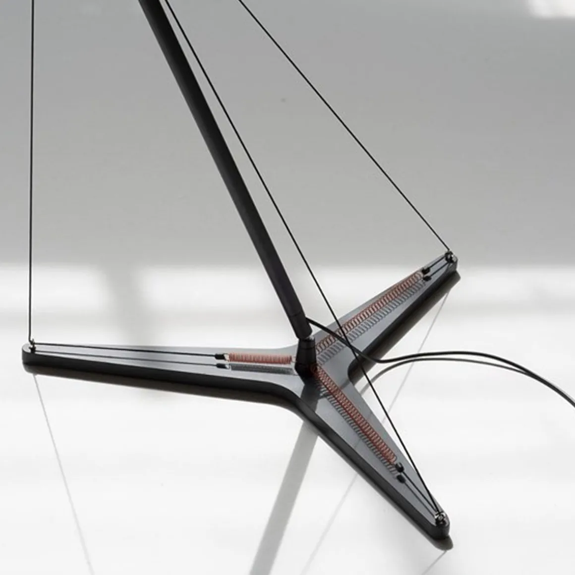 Un système à 3 tirants raccordés avec des ressorts fixés à 120˚ à sur une base en forme de Y permet d’orienter et de balancer la tige dans n’importe quelle direction dans un mouvement fluide et agréable, par un jeu infini d’équilibres. Le réflecteur, particulier et articulé, qui accueille l’ampoule à led, complète la fonctionnalité de Y3.