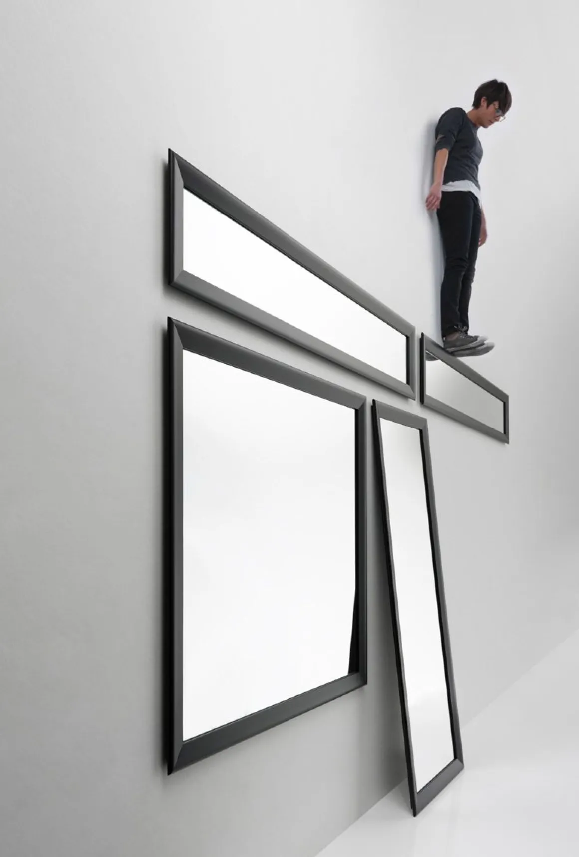 Les miroirs Yume peuvent être suspendus horizontalement, verticalement, ou pour les grandes tailles, placés sur le plancher. Protégé par une pellicule anti-accident en polyéthylène adhésif, si le miroir se brise, aucune lame coupante ne se détache.