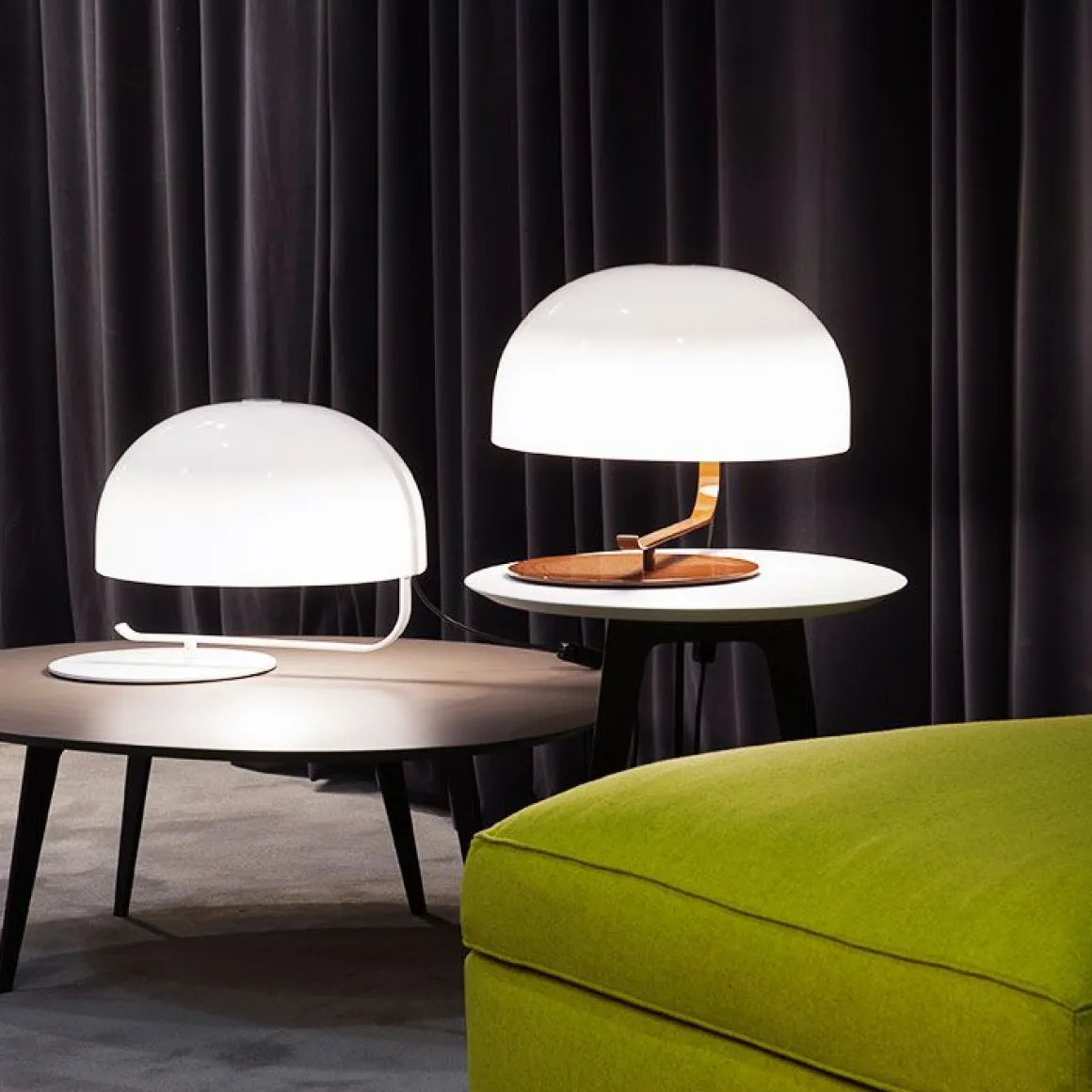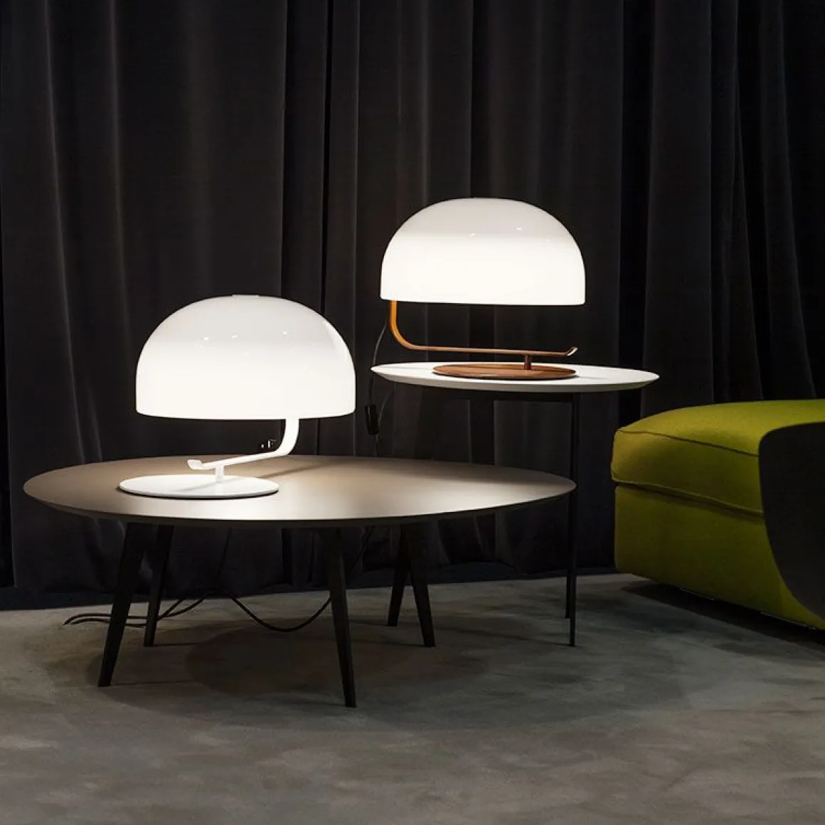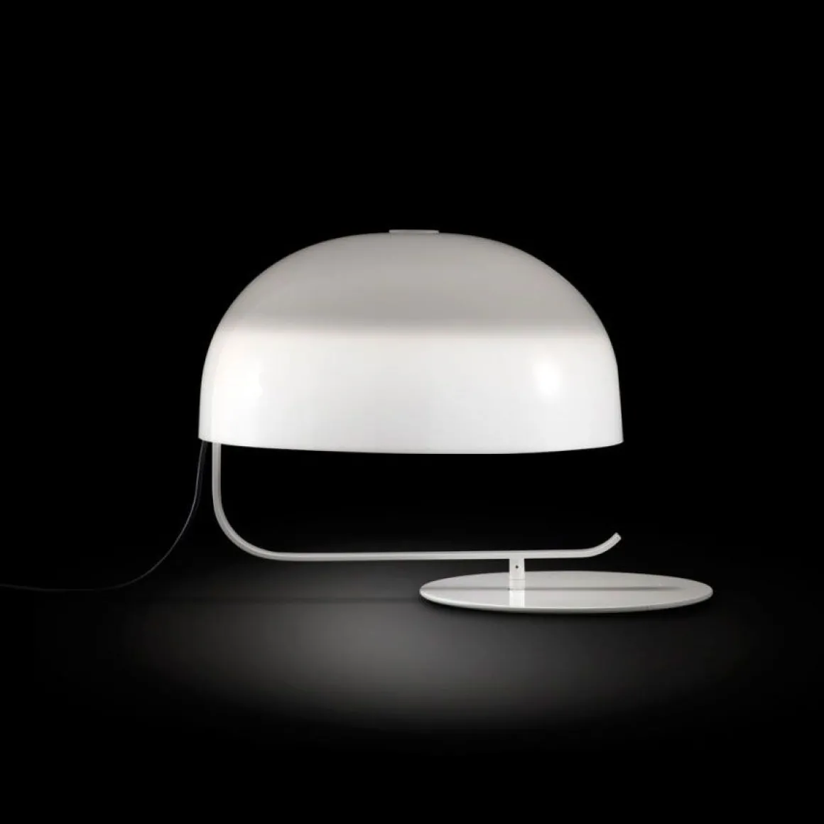 Elaborée entre 1963 et 1965, le Zanuso 275 a été conçue comme une lampe de bureau. A noter qu’il n’a pas été conçu comme une lampe opérationnelle, mais plutôt pour résoudre le problème de l’éclairage sur une table de travail placée dans un environnement non adéquat pour un bureau. Telle est la raison derrière le grand dôme de méthacrylate soutenu par un bras courbé, mais surtout le mécanisme cinématique imprévisible, à la limite de statique. En effet à partir de la position initiale repliée où le diffuseur est superposé à la base circulaire, avec pratiquement le même diamètre, une rotation le porte à une position excentrée. D’un côté, il reste la circonférence de la base, de l’autre celle de la tête: l’effet est particulièrement marqué lorsque la structure est peinte en noir, créant ainsi un cercle noir et un blanc, un cercle lumineux sur la table. Aujourd’hui, le Zanuso 275 est «voir la lumière» à nouveau, représentée d’une façon philologique aussi grâce à la collaboration avec les héritiers de Zanuso. Iconique dans sa forme, il peut être utilisé non seulement au bureau, mais en général sur toutes les tables de toutes tailles, son rôle principal étant d’éclairer une partie d’une pièce.