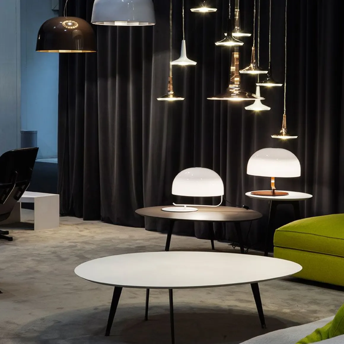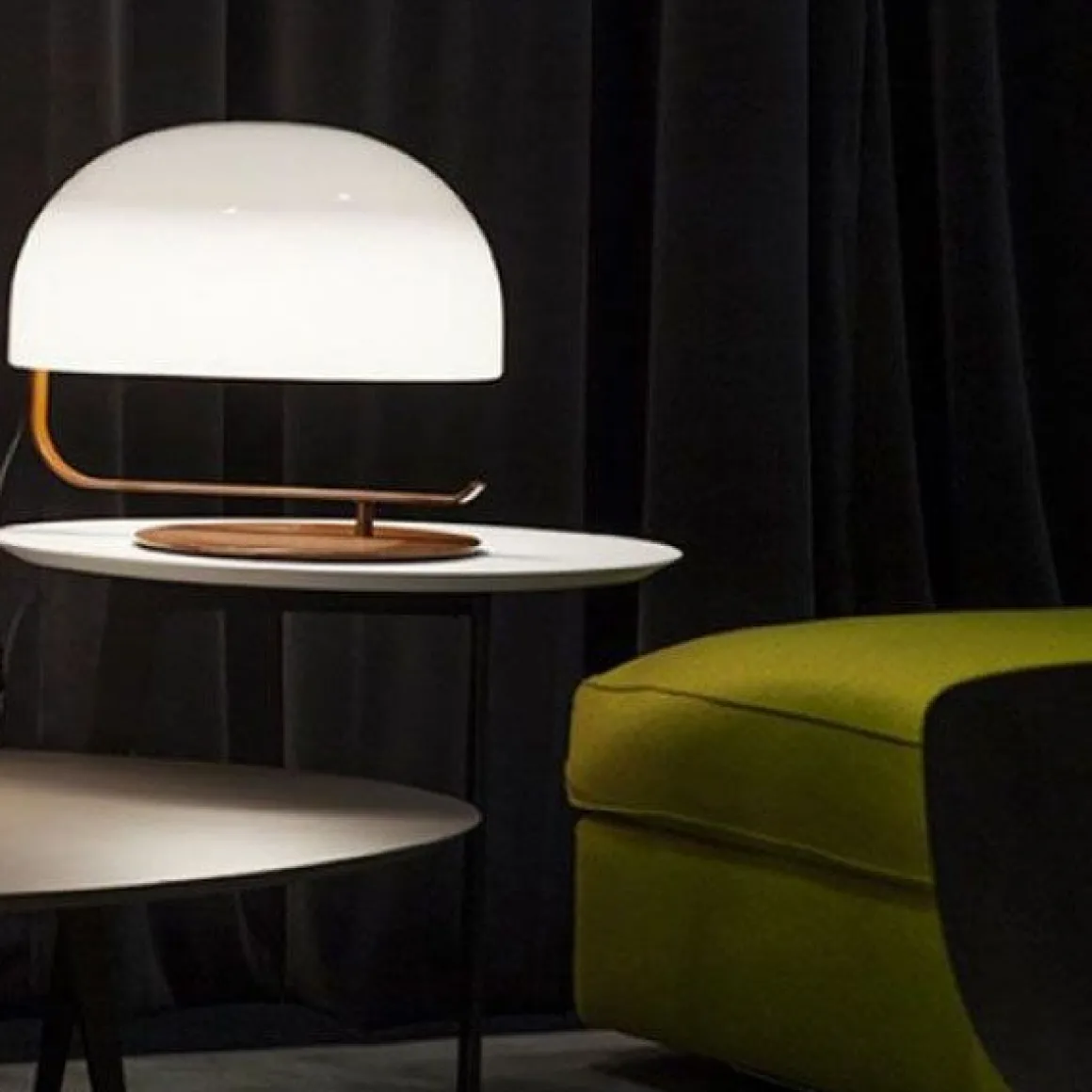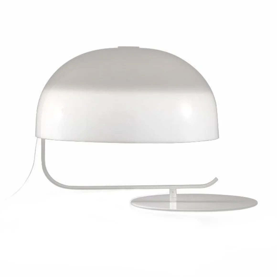 Elaborée entre 1963 et 1965, le Zanuso 275 a été conçue comme une lampe de bureau. A noter qu’il n’a pas été conçu comme une lampe opérationnelle, mais plutôt pour résoudre le problème de l’éclairage sur une table de travail placée dans un environnement non adéquat pour un bureau. Telle est la raison derrière le grand dôme de méthacrylate soutenu par un bras courbé, mais surtout le mécanisme cinématique imprévisible, à la limite de statique. En effet à partir de la position initiale repliée où le diffuseur est superposé à la base circulaire, avec pratiquement le même diamètre, une rotation le porte à une position excentrée. D’un côté, il reste la circonférence de la base, de l’autre celle de la tête: l’effet est particulièrement marqué lorsque la structure est peinte en noir, créant ainsi un cercle noir et un blanc, un cercle lumineux sur la table. Aujourd’hui, le Zanuso 275 est «voir la lumière» à nouveau, représentée d’une façon philologique aussi grâce à la collaboration avec les héritiers de Zanuso. Iconique dans sa forme, il peut être utilisé non seulement au bureau, mais en général sur toutes les tables de toutes tailles, son rôle principal étant d’éclairer une partie d’une pièce.