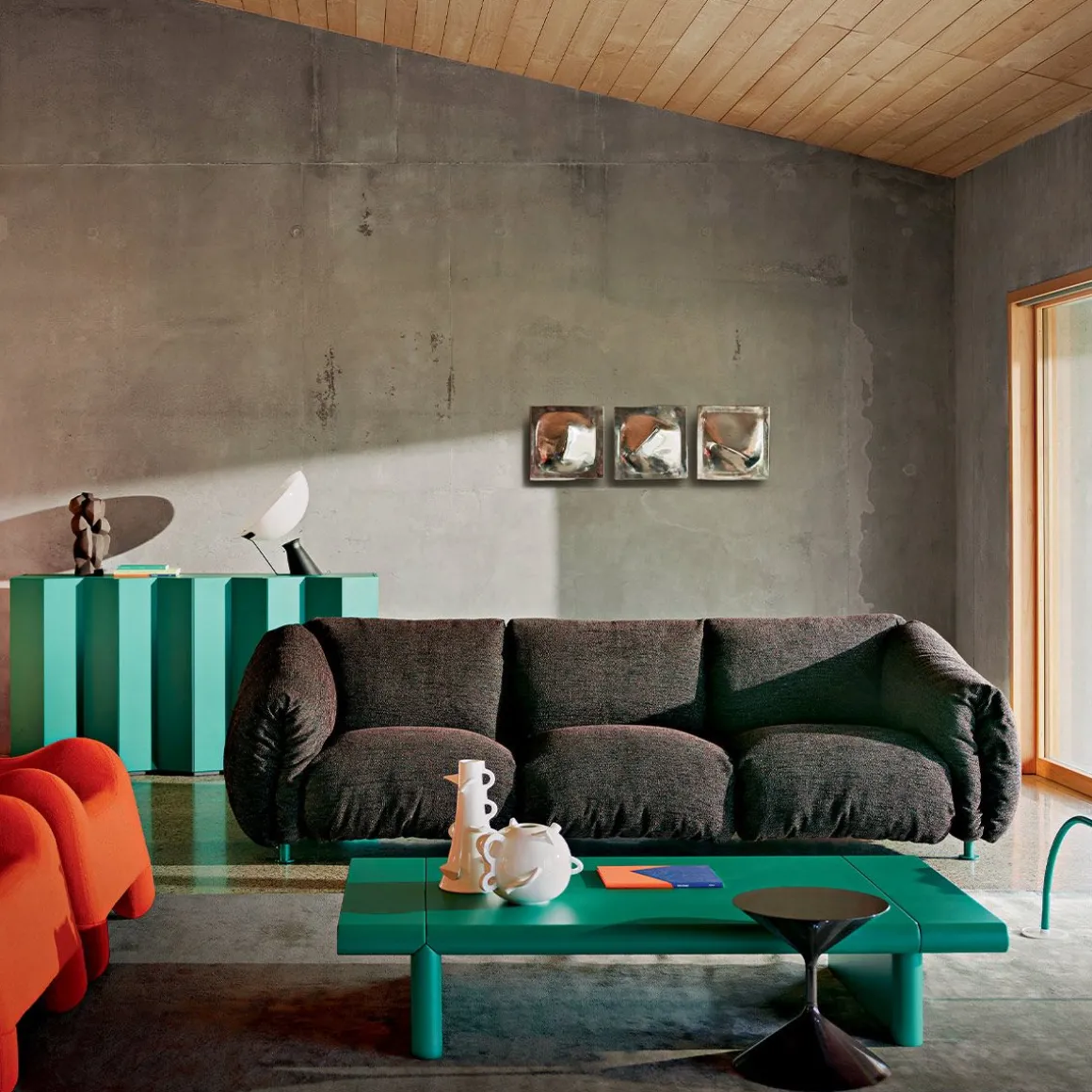 Za:Za Max de Zanotta par Zaven. Fabriqué exclusivement à partir de matériaux recyclés et recyclables, Za:Za Max est bien plus qu’un simple canapé : c’est un véritable manifeste de responsabilité écologique. Grâce à ses dimensions et à son assise plus profonde pour un confort optimal, ce canapé est modulable – deux embouts séparés et un pouf – permettant différentes configurations et stimulant la créativité en décoration intérieure.