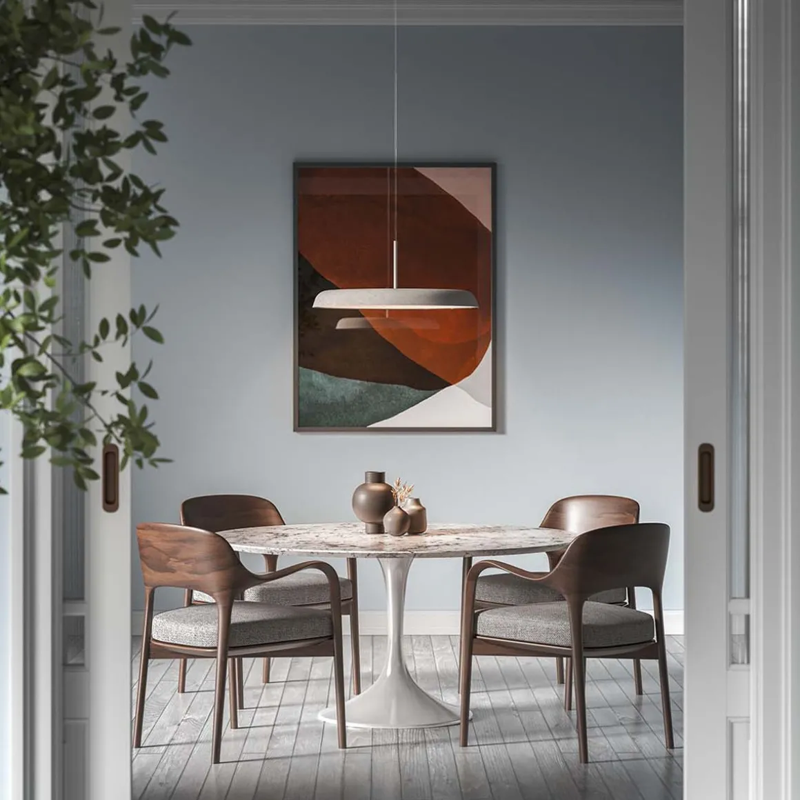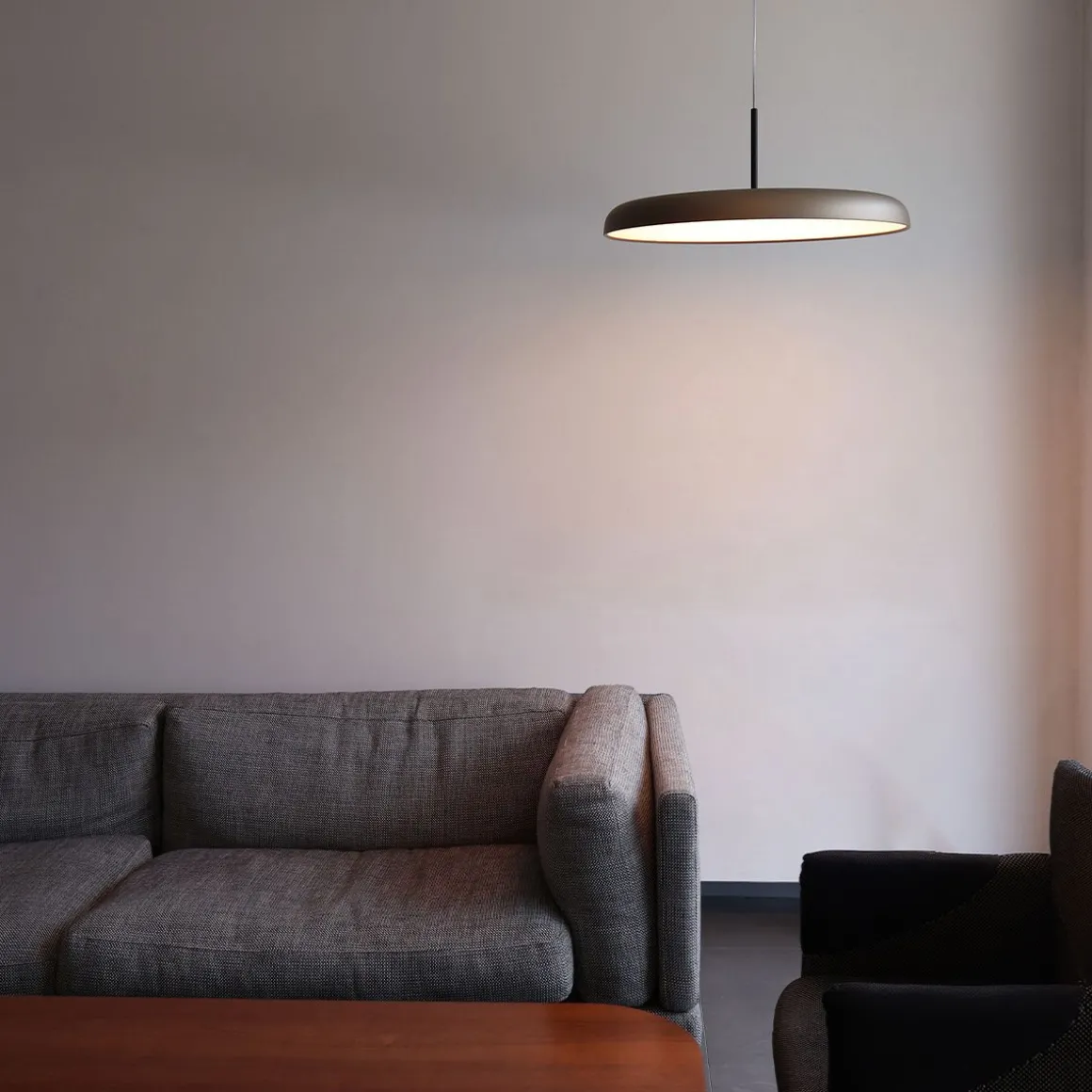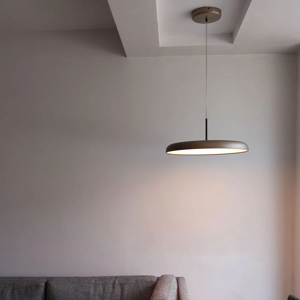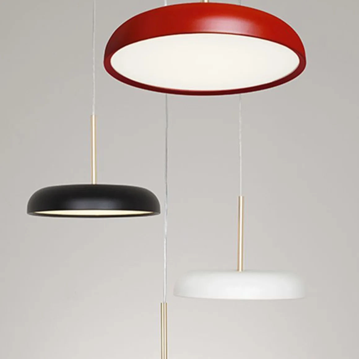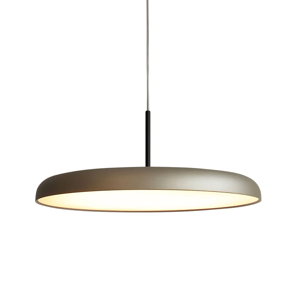 Suspension en tôle d’aluminium tournée en deux dimensions de 30, 45 et 60 cm, peinte en poudre époxy Fine Textured avec des détails en aluminium anodisé Gold. Intégrez une source de lumière LED SMD avec lumière directe. Driver électronique dimmable TRIAC inclus.